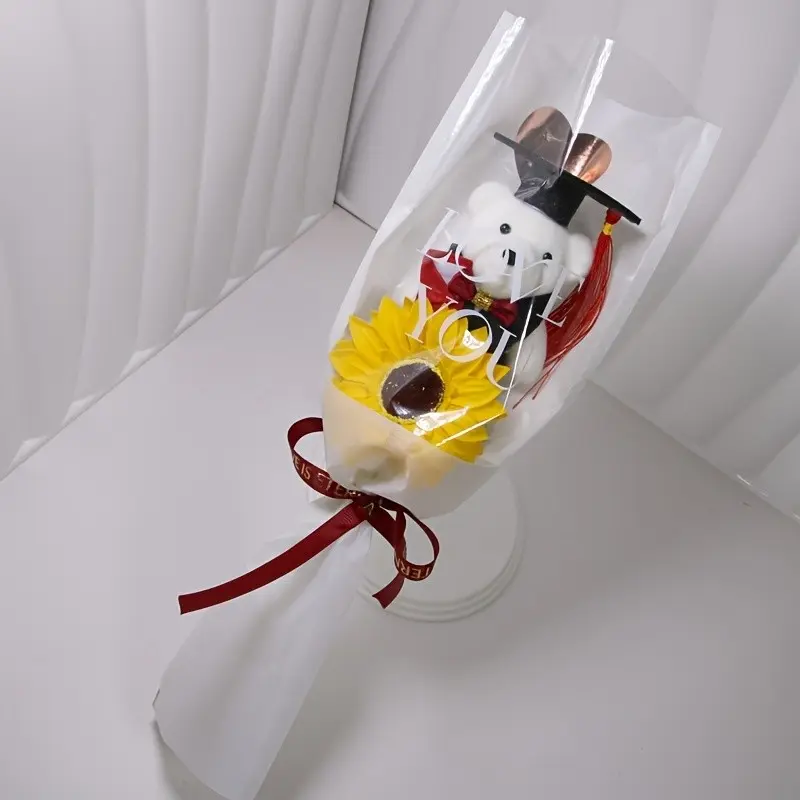1pc of Bear Wearing a Graduation Cap with Golden Heart Wrapping Paper Bouquet, Realistic Sunflower Bouquet, a Gift for Friends, Classmates, Or Girlfriends During Graduation Season Parties