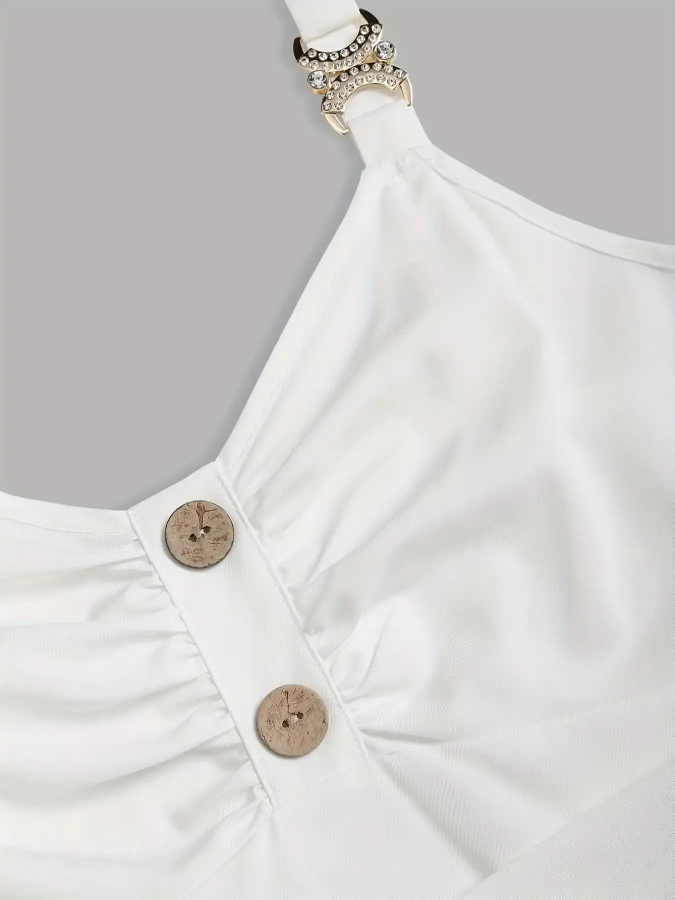[Button & Ruched Detail]: Adds a touch of elegance and flair with buttons and ruched detailing.