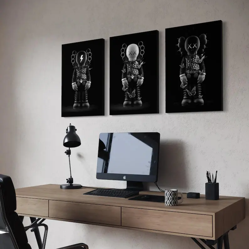 Set Of 3 Framed Wall Art Canvas / Poster Prints| Hypebeast Companion Figures Modern Decor