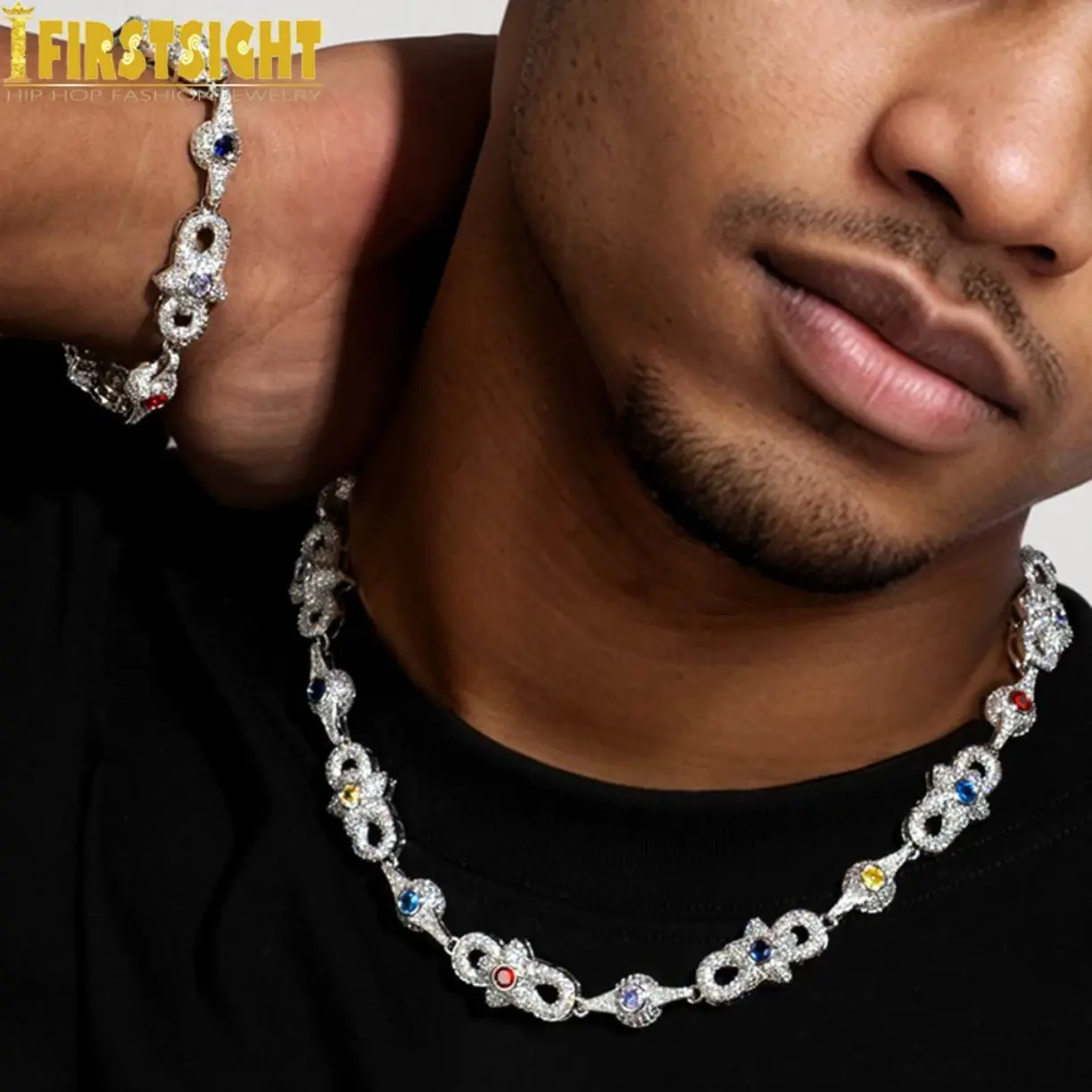 Iced Out Star Eye Moissanite Bracelet Necklace Prong Setting Moissanite Infinity Cuban Link Chain Women Men Hip Hop Fashion Jewelry