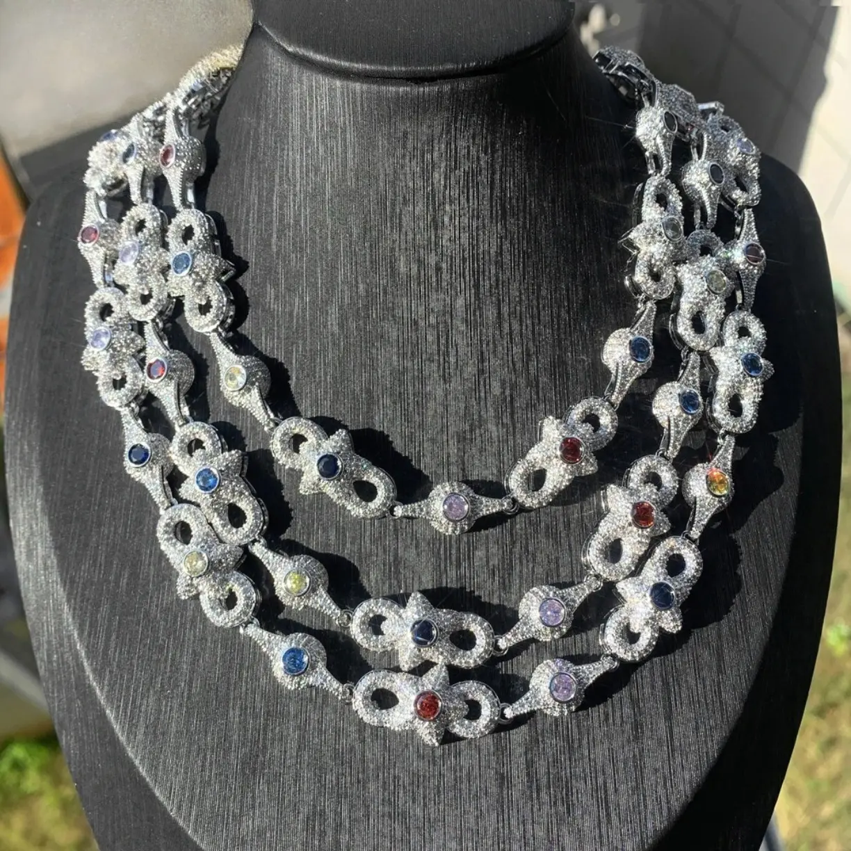 10/12MM Square Clustered Moissanite Bracelet Necklace For Women Men HipHop Link Choker Iced Out Moissanite S925 Silver Color Fashion Rock Jewelry