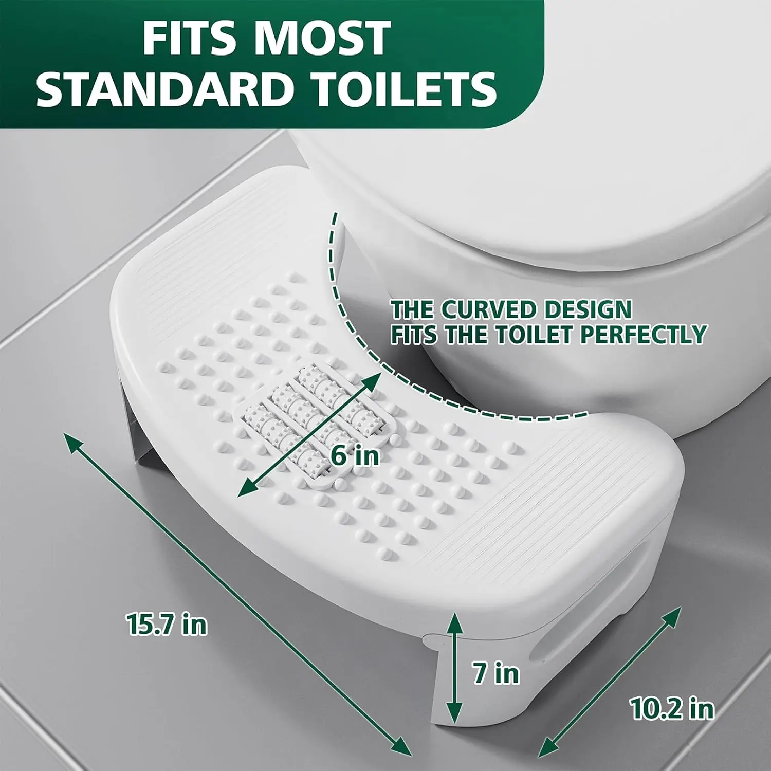 [Versatile and Comfortable Design]Ergonomically designed for maximum comfort, our toilet stool for bathroom caters to a wide range of users, including seniors, pregnant women, and children.The 7-inch height is a perfect fit for 14"-16" standard toilets.