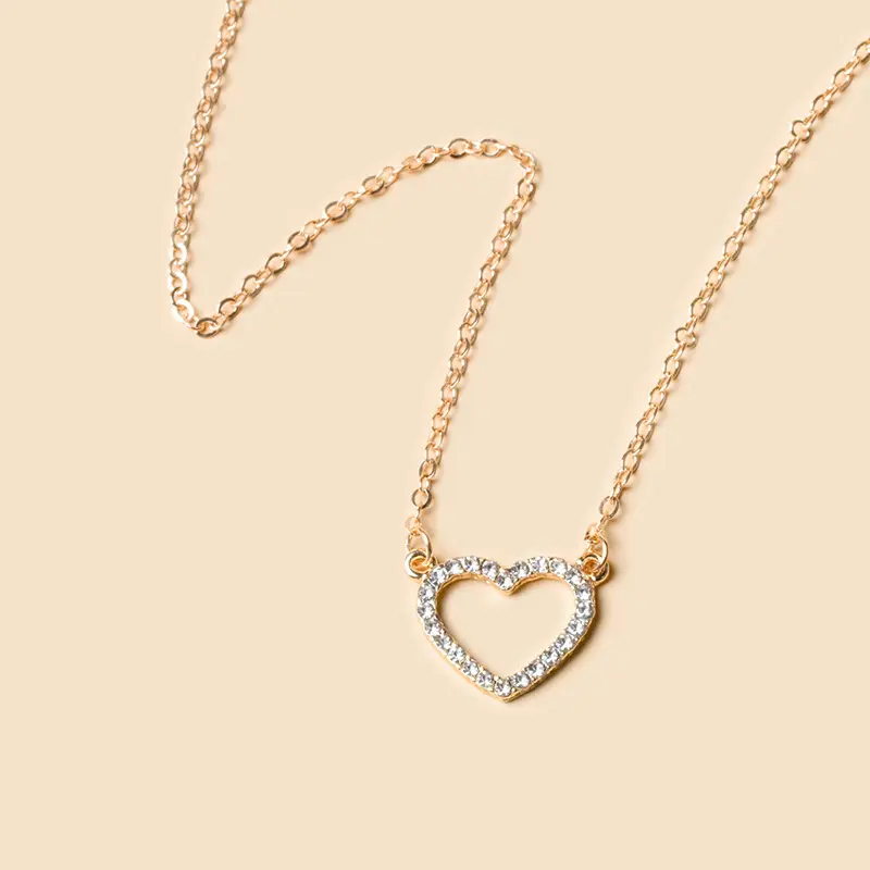 ✨ Elevate your style with this Heart Alloy Necklace. It combines elegance and versatility, featuring a heart-shaped pendant and sparkling rhinestones. The sleek water wave chain adds sophistication, making it perfect for casual and formal outfits. This clavicle necklace enhances your neckline with grace, exuding high-end charm. A must-have for any jewelry collection.
