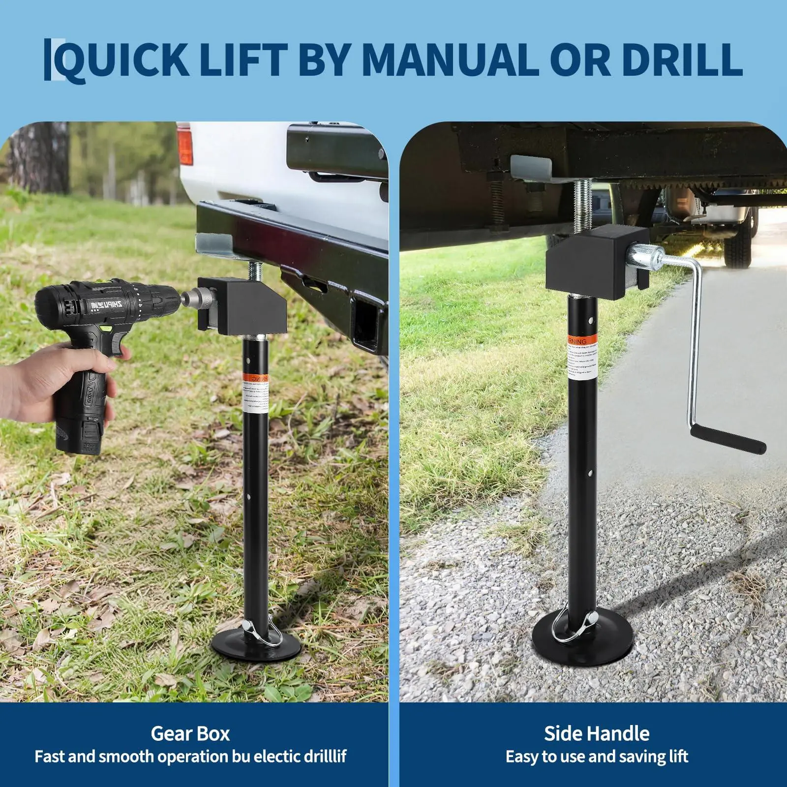 All-Weather Steel Construction: Crafted from heavy-duty steel and coated with a durable, rust-resistant finish, these support jacks are built to endure the elements. From rain and mud to sun exposure, their rugged construction guarantees reliable performance and longevity throughout all your camping adventures.