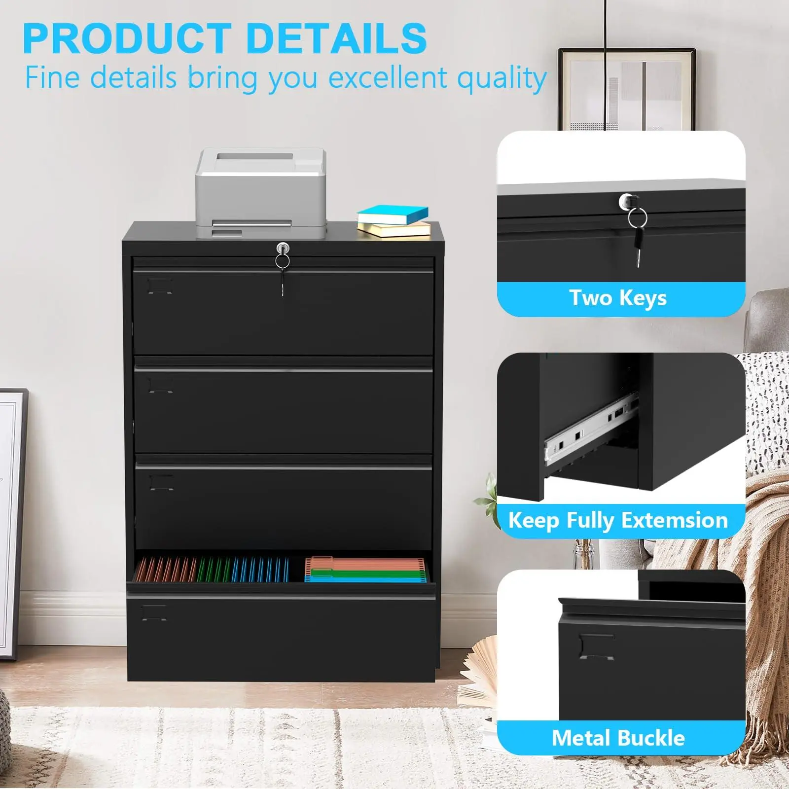 Spacious 4 Drawer Design: Enjoy ample storage space with four spacious drawers, allowing for efficient organization of your documents and office supplies.