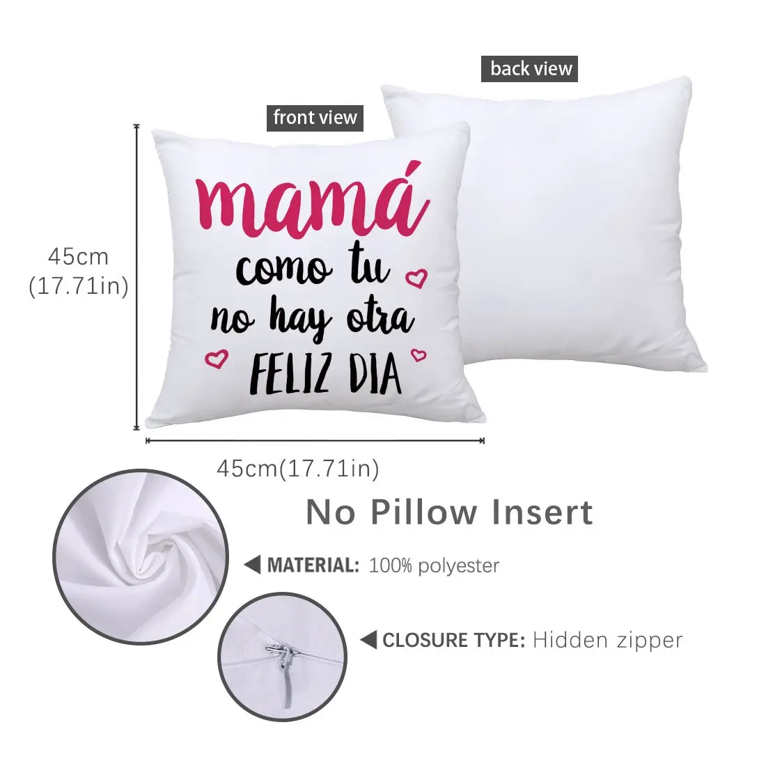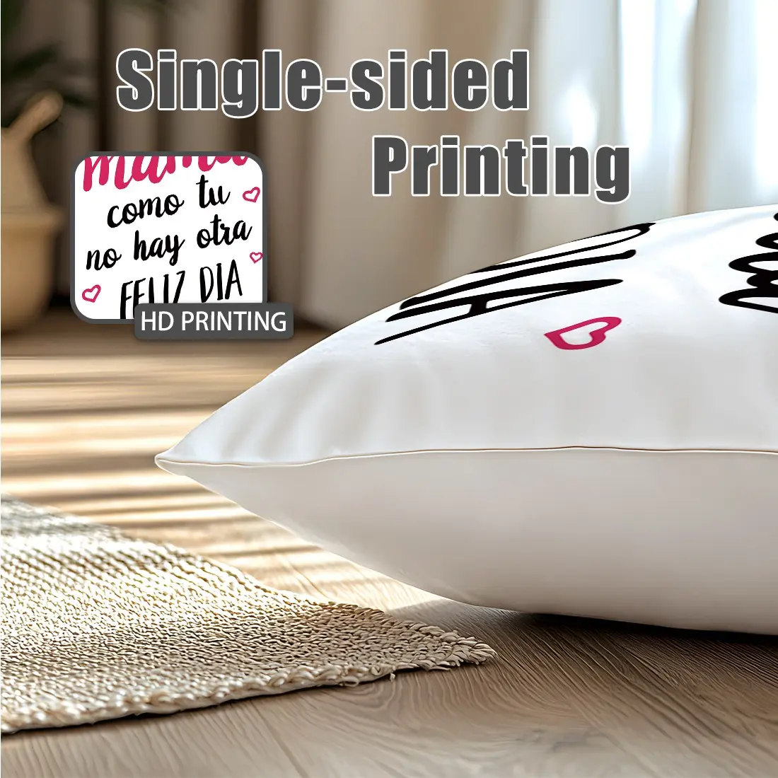Mother's Day Spanish Text Pattern Pillowcase, Single-Sided Print, Holiday Gift, Home Decor for Living Room Bedroom, No Insert Included