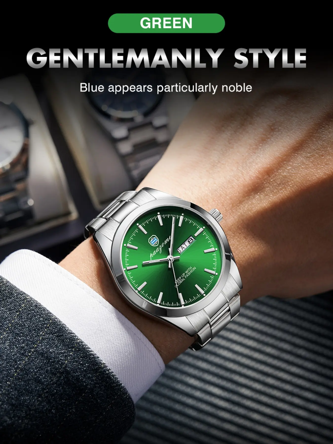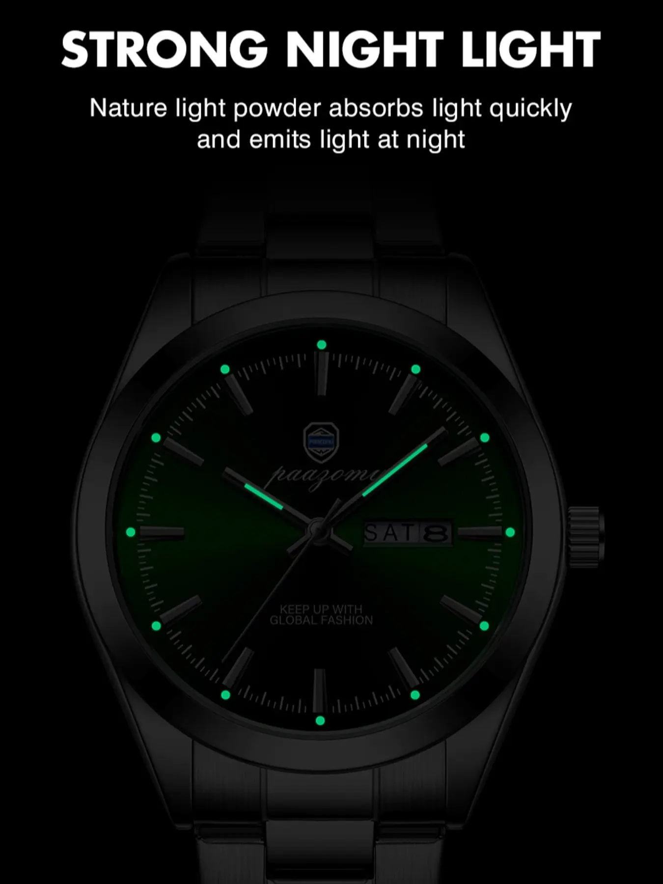 Paazomu Luxury Men's Watch, Waterproof Luminous Date, Stainless Steel Sport Fashion, Quartz Watch for Men, Stylish Male Clock
