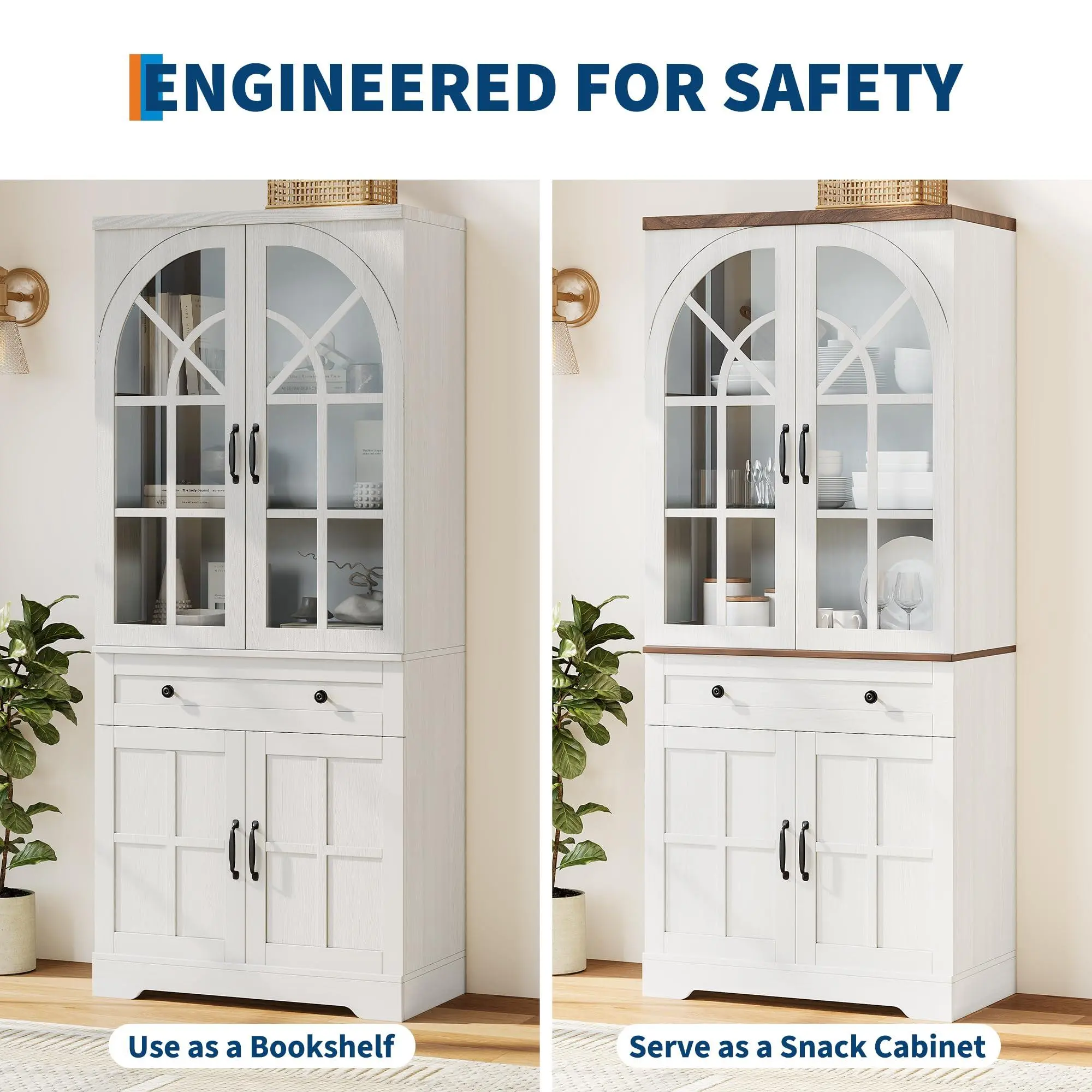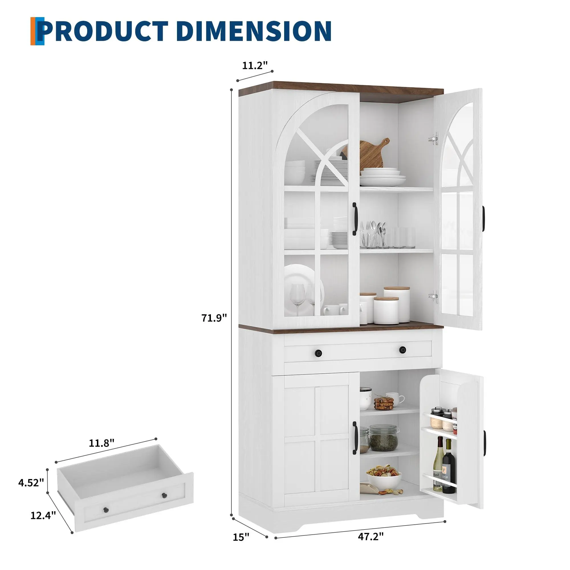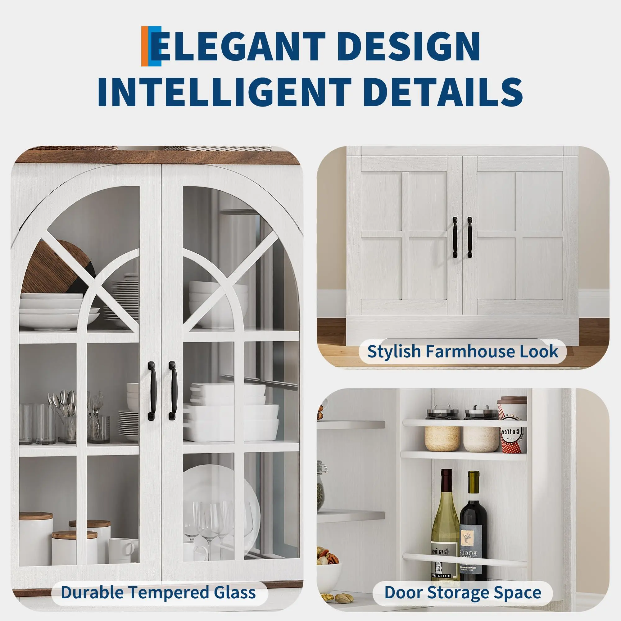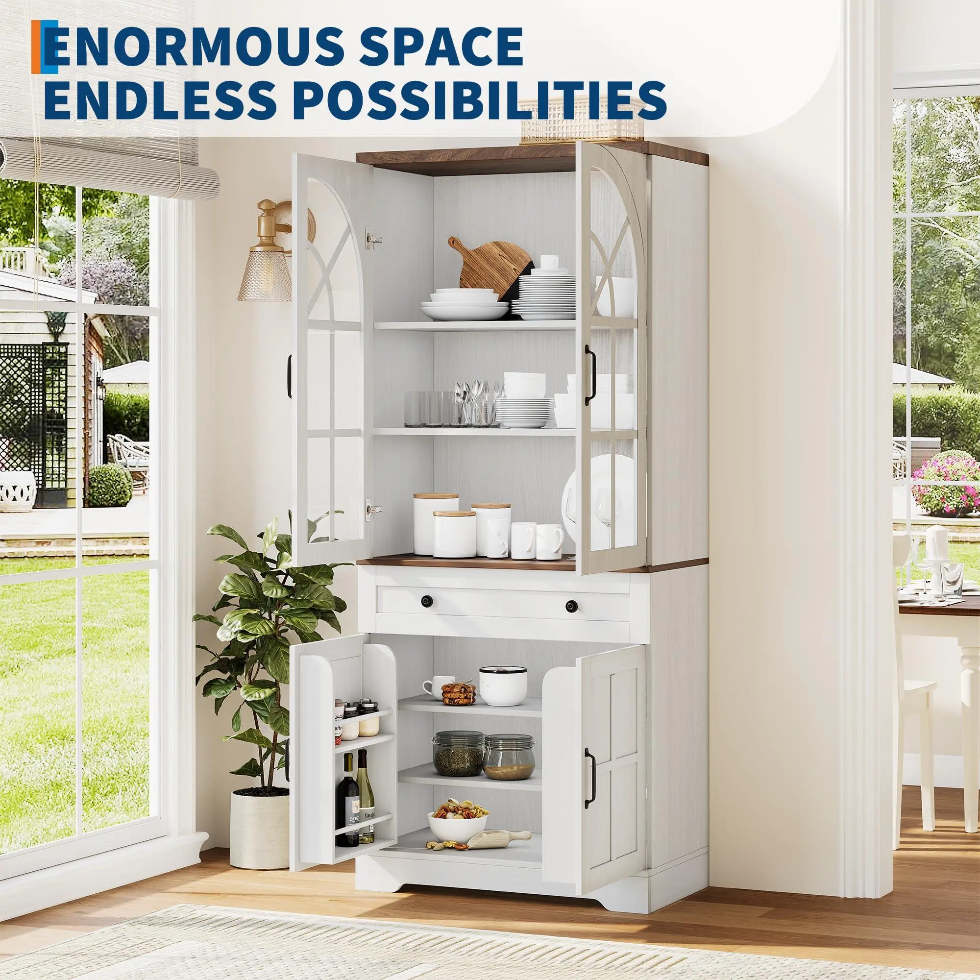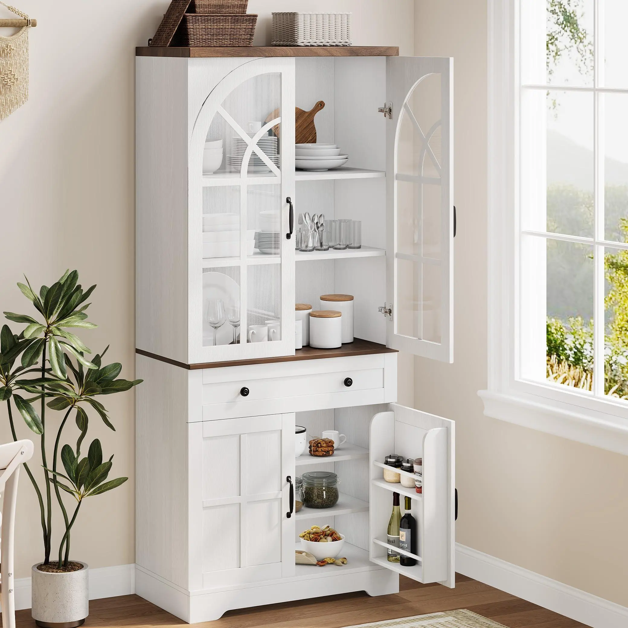 Crafted with Farmhouse Character:Designed with an arched glass door profile and classic farmhouse styling, this pantry cabinet brings a warm, vintage-inspired look that complements modern and traditional interiors alike.