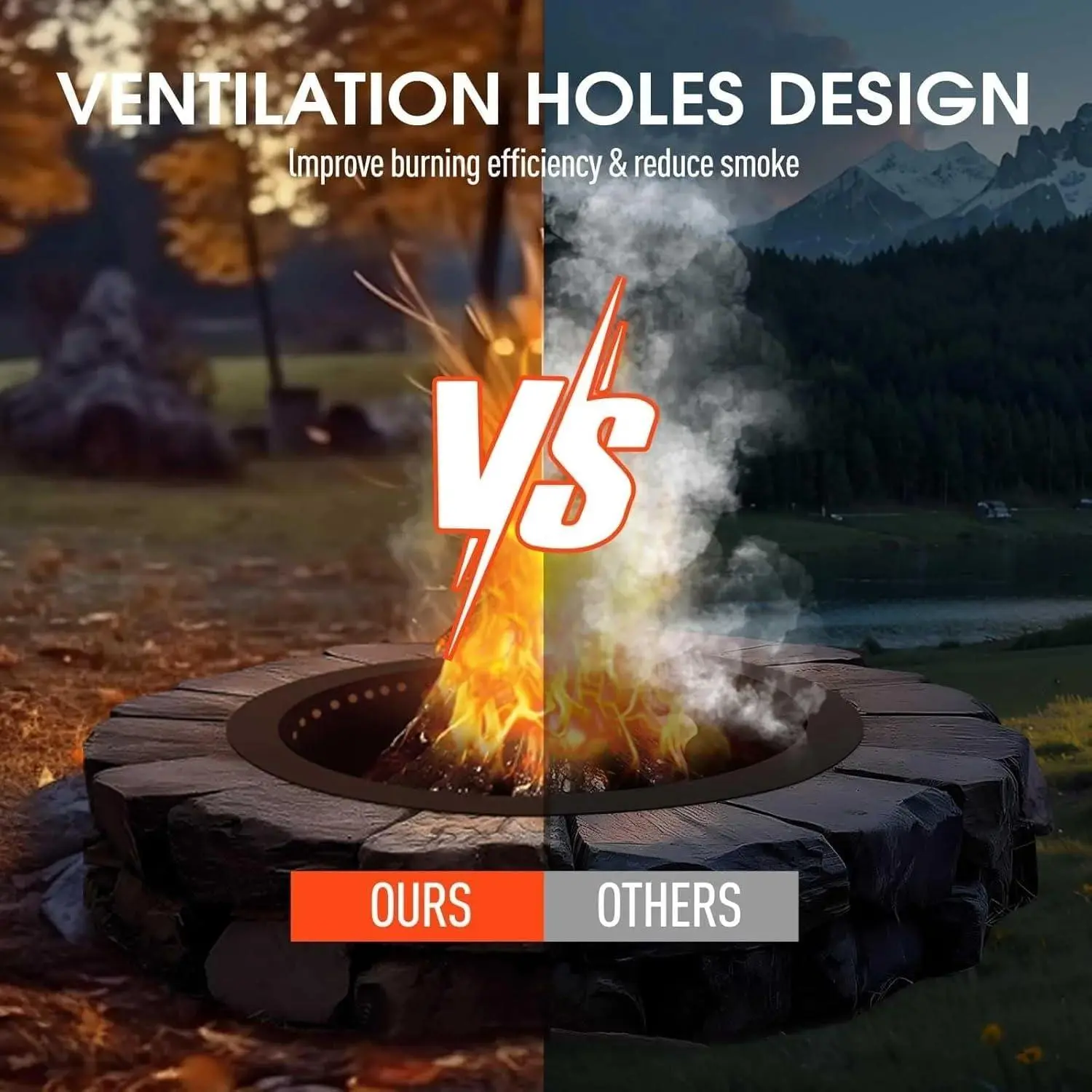 [Improved Airflow for Cleaner, More Efficient Burning]: Thoughtfully placed ventilation holes around the upper part of the ring promote better air circulation, helping wood burn more fully and efficiently. This improved airflow can support a hotter, more consistent fire and help reduce excess smoke, creating a more enjoyable, comfortable experience for family and friends.