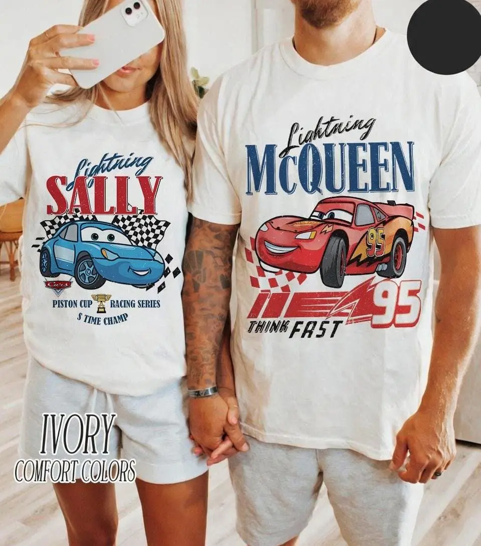 Lightning & Sally Matching Shirts, Cars Couple Tee, Piston Cup Racing Shirt, His and Hers Trip Outfit, Honey Moon TeeLightning & Sally Matching Shirts, Cars Couple Tee, Piston Cup Racing Shirt, His and Hers Trip Outfit, Honey Moon Tee