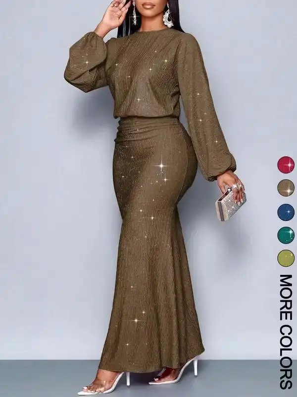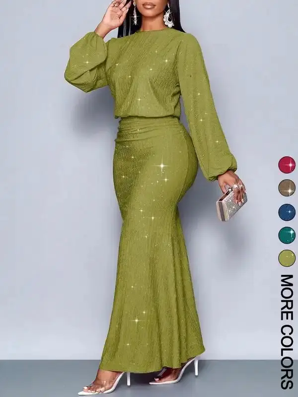 Dokotoo dress for women Clasi Women's Solid Color Lantern Sleeve High Split Dress