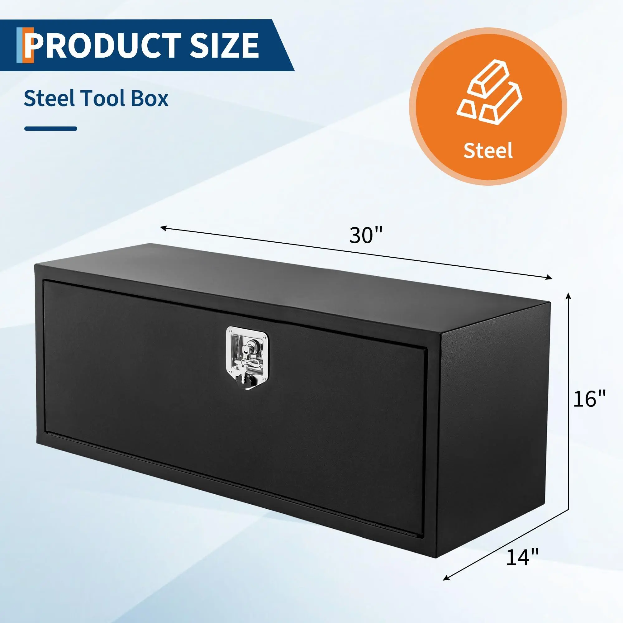 Durability and Security: Constructed from heavy-duty steel, this 30-inch truck tool box offers robust protection against impacts and harsh weather, ensuring your tools remain safe and secure. The lockable T-handle design with included keys provides reliable security for your valuable equipment.