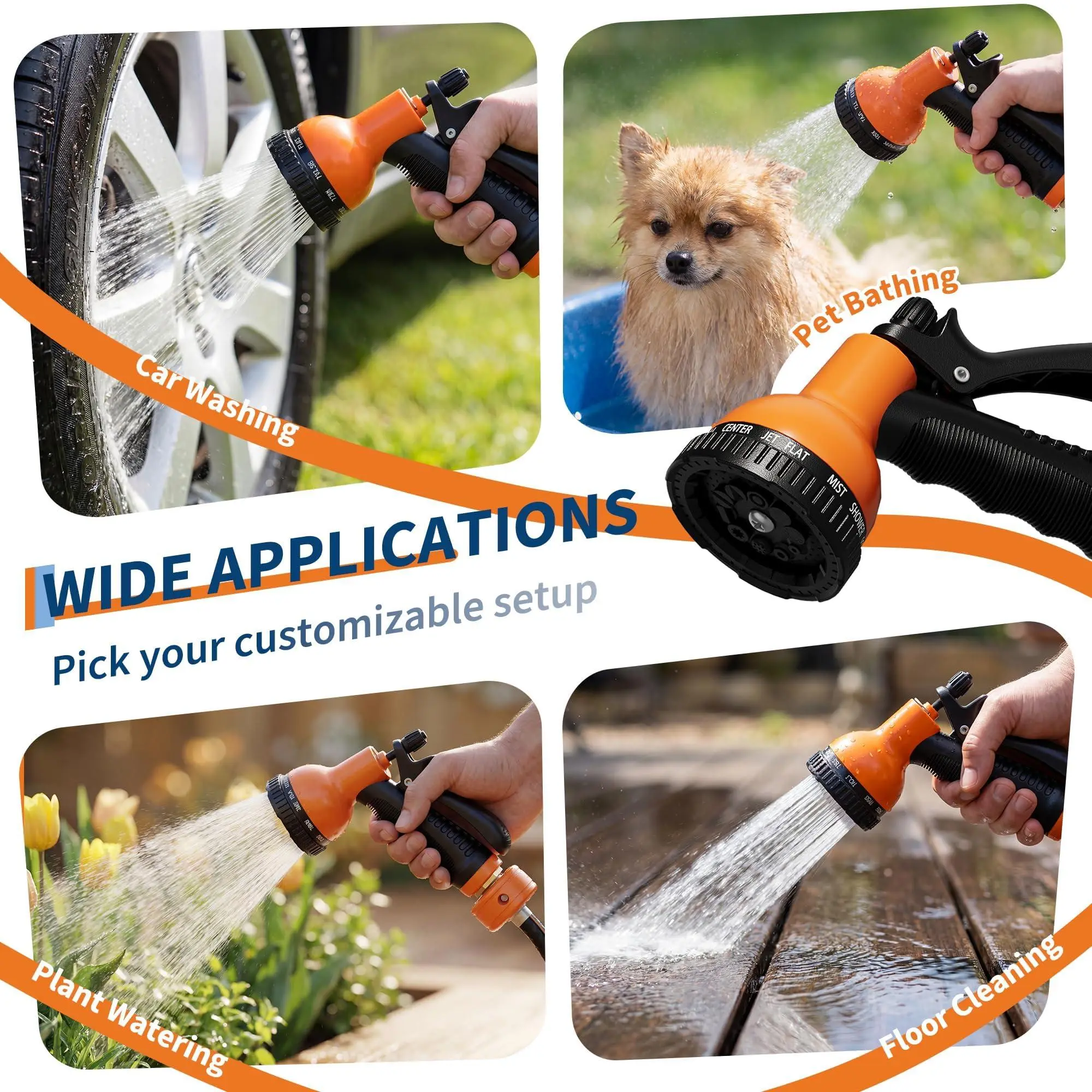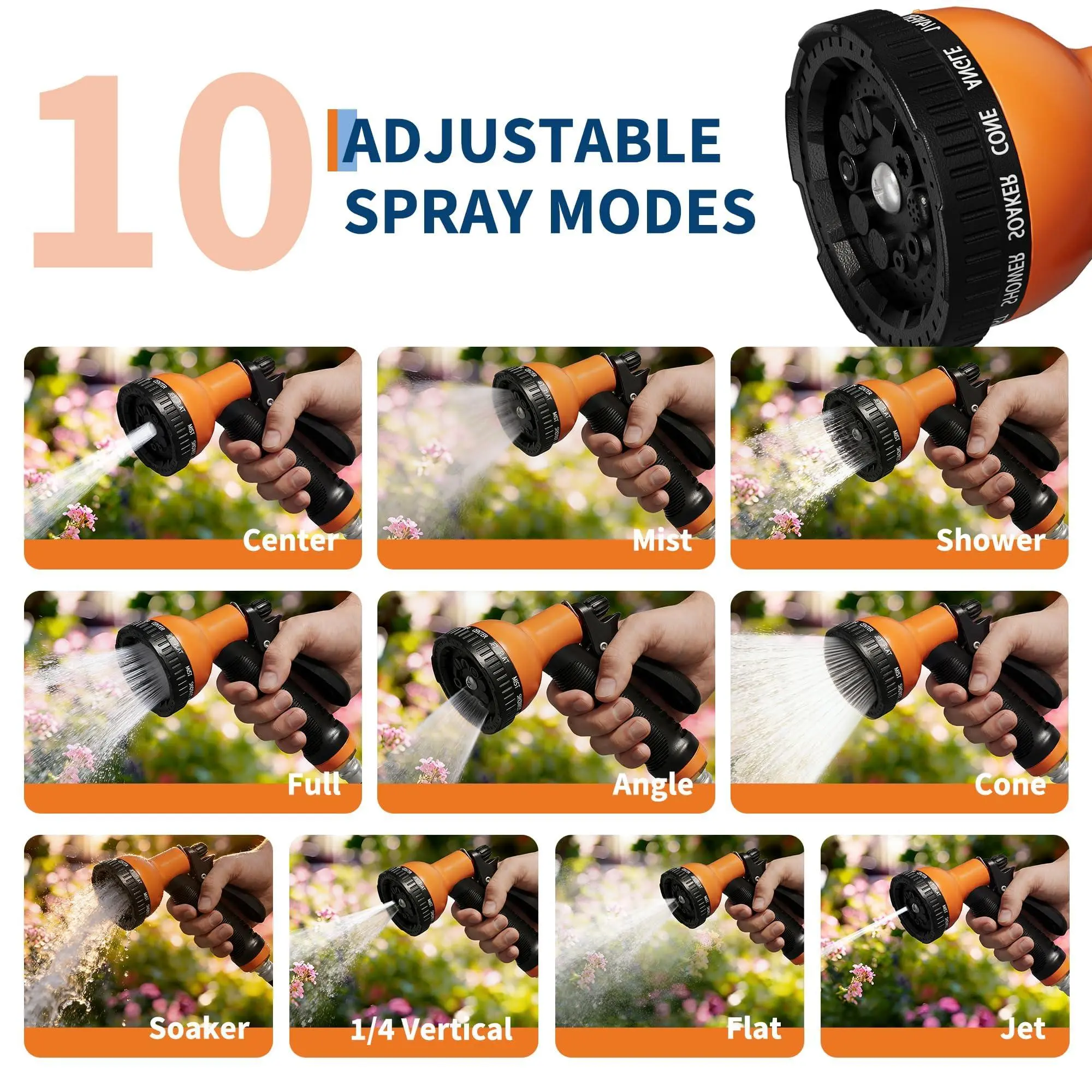 Multi-functional 10-design nozzle delivers versatile spray options, from gentle mist for delicate plants to high-pressure jet for thorough cleaning.