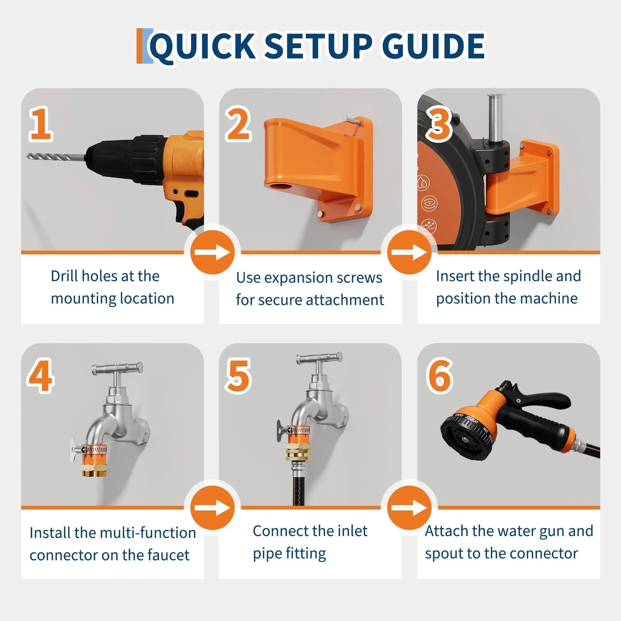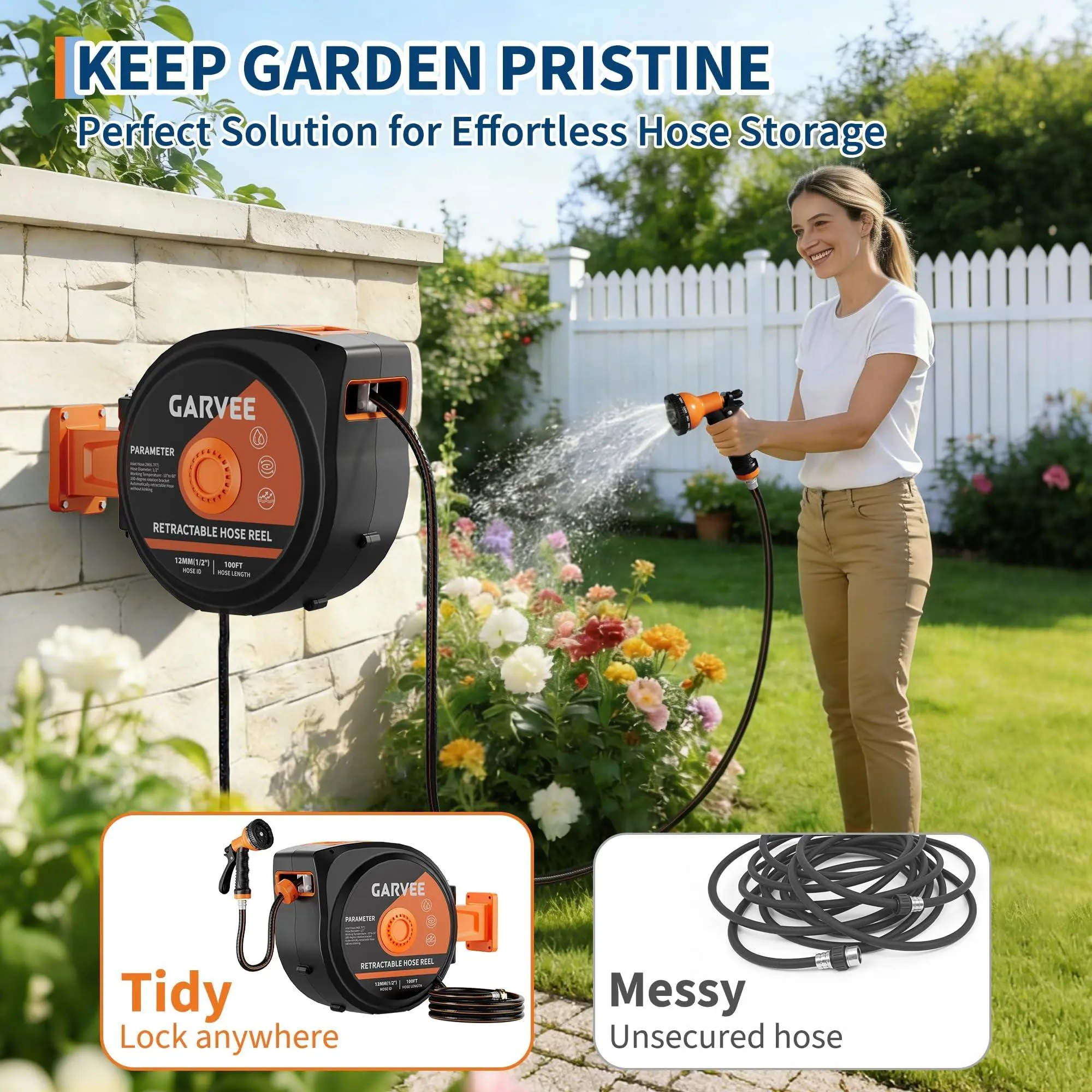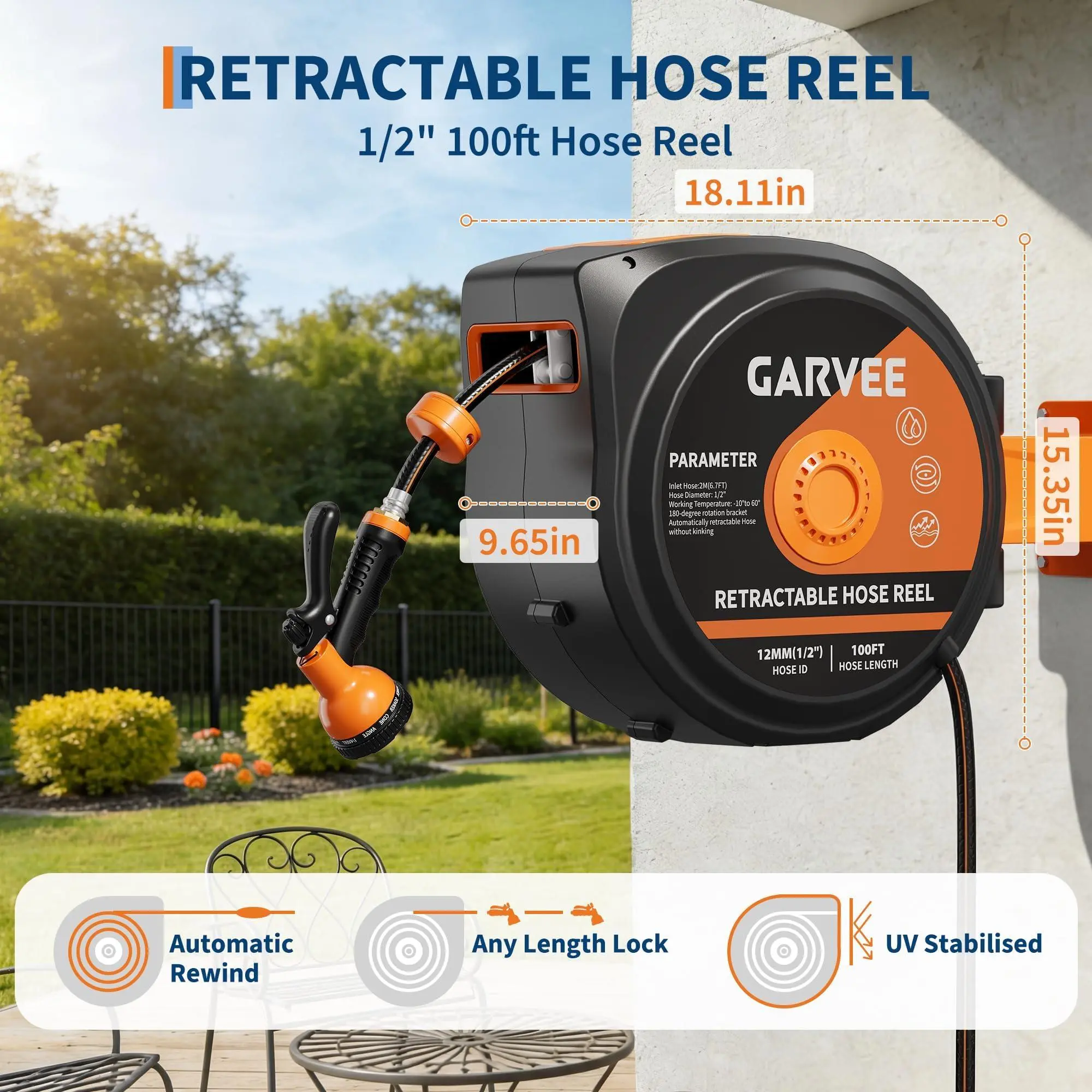 Secure locking at any length and a controlled slow rollback mechanism prevent tangling and sudden snaps, keeping your hose organized and safe.