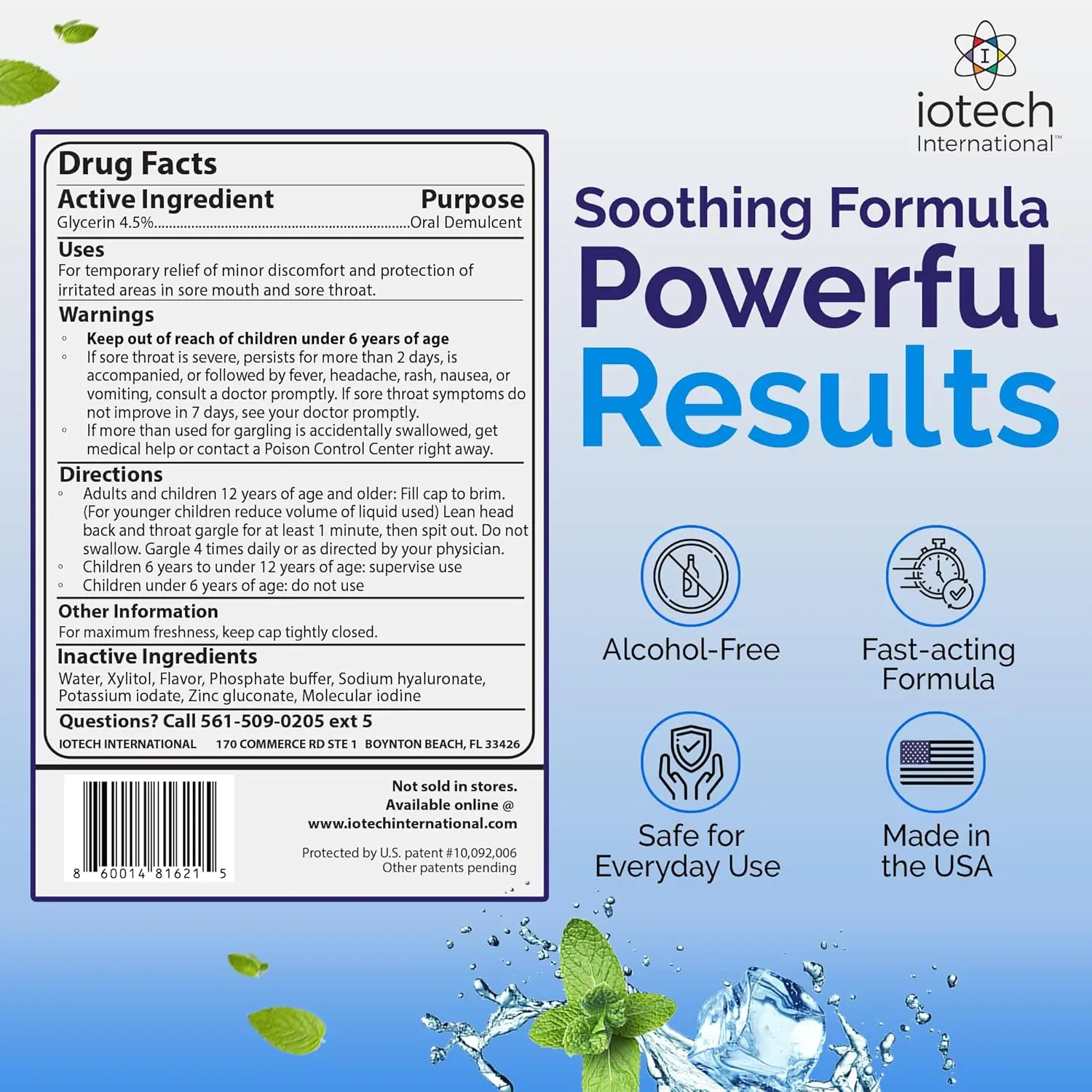 ·ioRinse STR delivers fast, effective relief using advanced technology designed for maximum performance - without harsh ingredients. Its alcohol-free formula is gentle yet powerful, providing a smooth, refreshing experience every time you use it. Built on patented, award-winning science and trusted by ENT specialists and physicians across the U.S., ioRinse STR offers professional-grade care you can rely on. The soft-mint flavor and exceptional mouthfeel make it easy to use daily—no burning, dryness, or unpleasant aftertaste. With a generous 16-ounce bottle, ioRinse STR gives you lasting value and dependable relief in every pour.