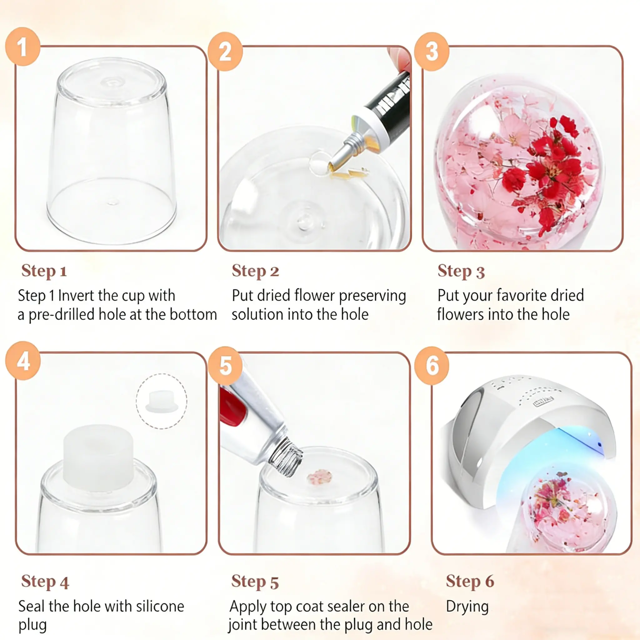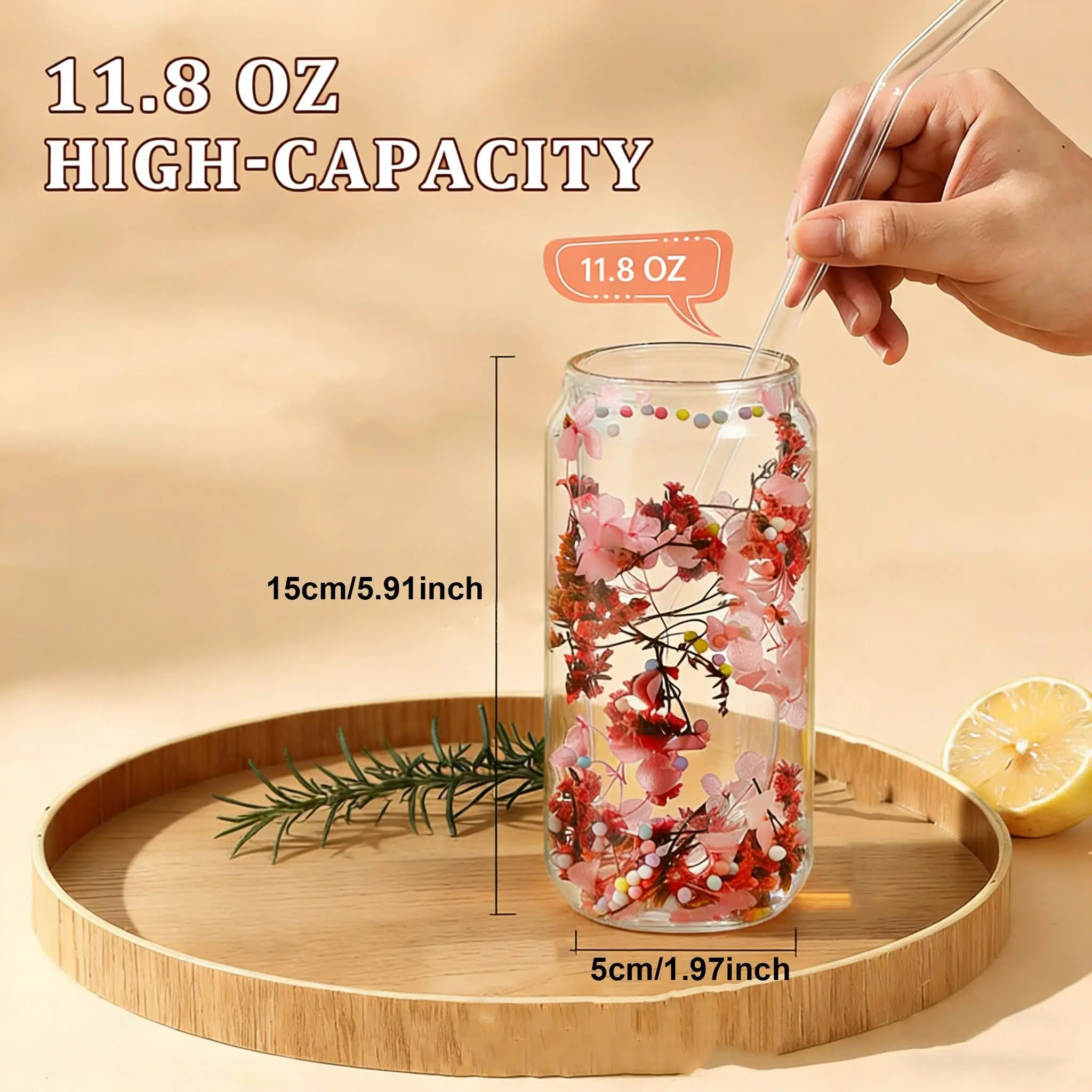 ·Dried Flower Glass Cup: The body of the dried flower glass cup is made with high-quality sublimation coating, which allows for sublimation using a convection oven or thermal press for insulated cups