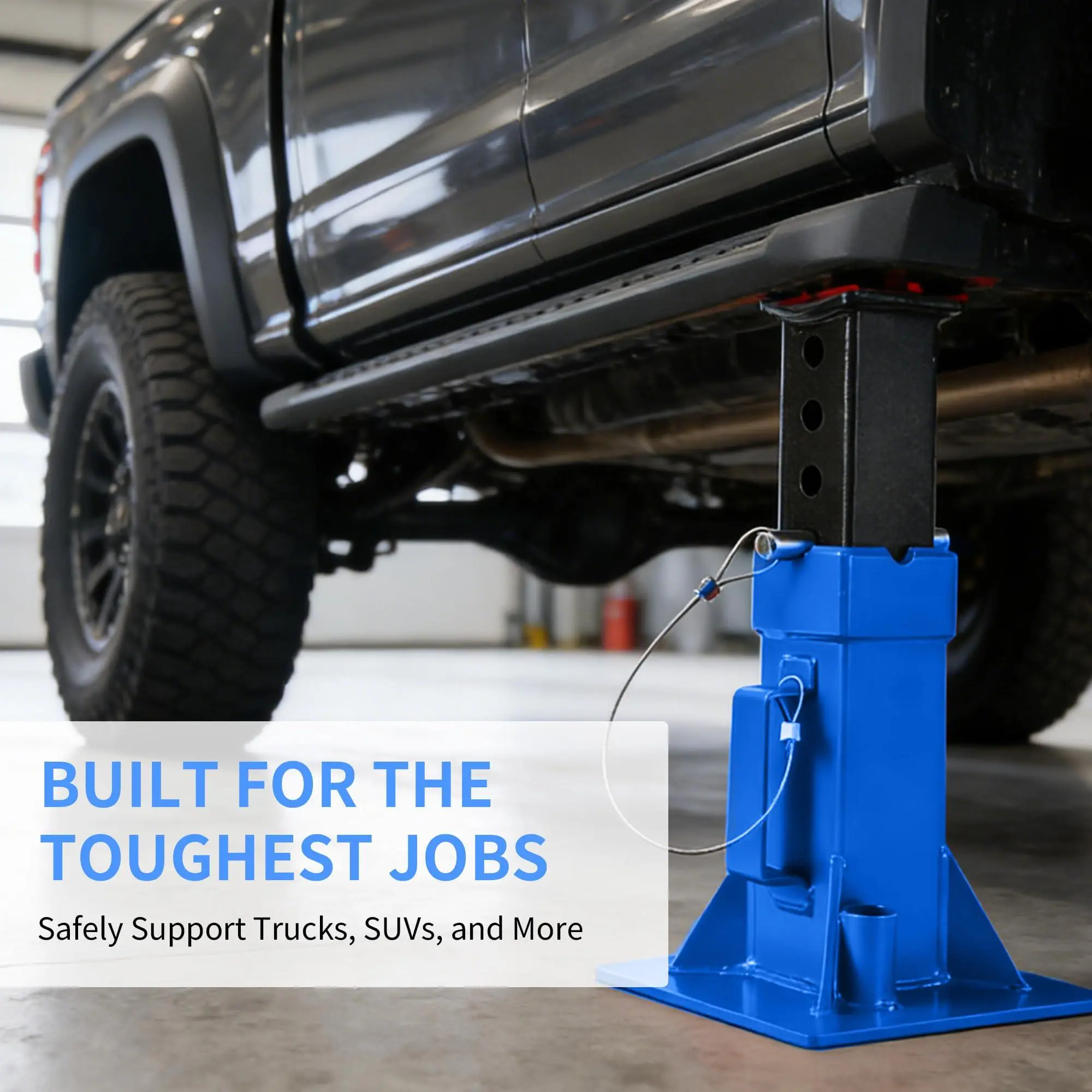 ENGINEERED FOR THE HEAVIEST LOADS: Engineered for the toughest jobs, this pair of jack stands provides the critical support needed for working on large vehicles like heavy trucks and RVs. The robust, all-steel frame is professionally welded to guarantee maximum stability and prevent any bending under its full rated load, making it your go-to choice for serious repairs.