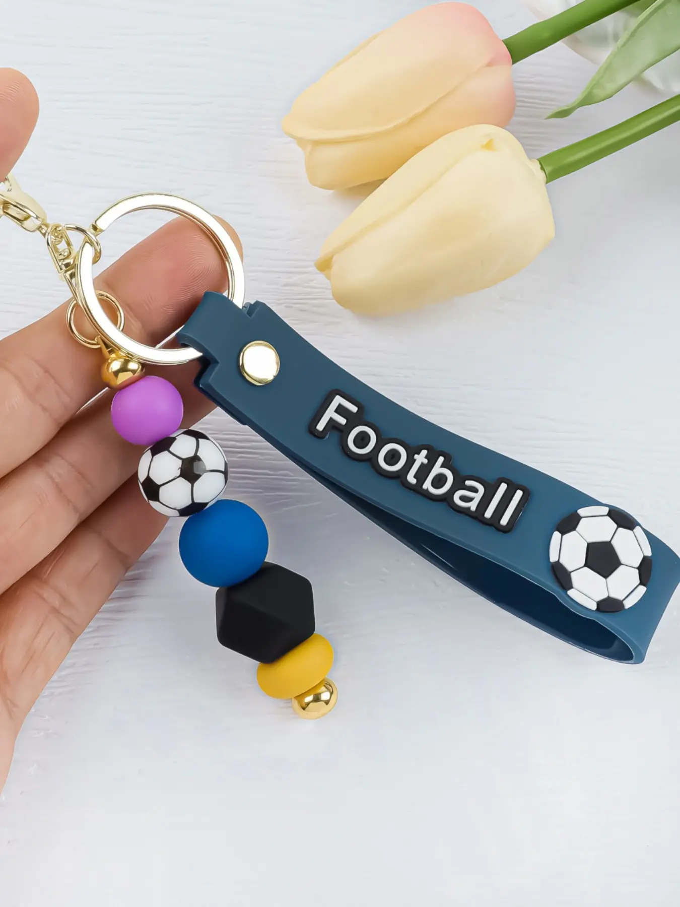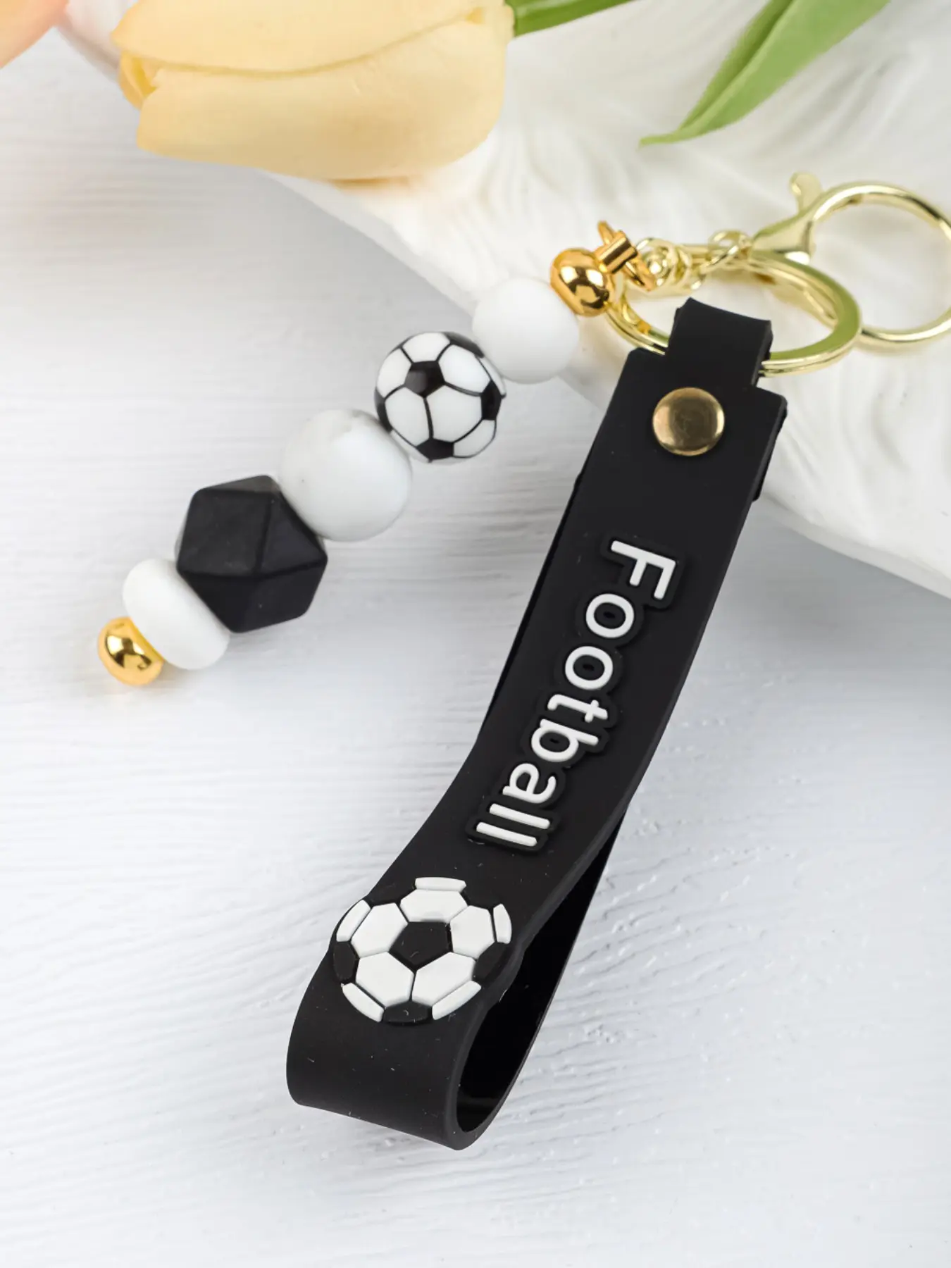 Trendy Soccer Beaded Keychain with Wrist Strap, Perfect Gift for Football Lovers, Silicone Beaded Keychain, Sports Style Soccer Bag Charm