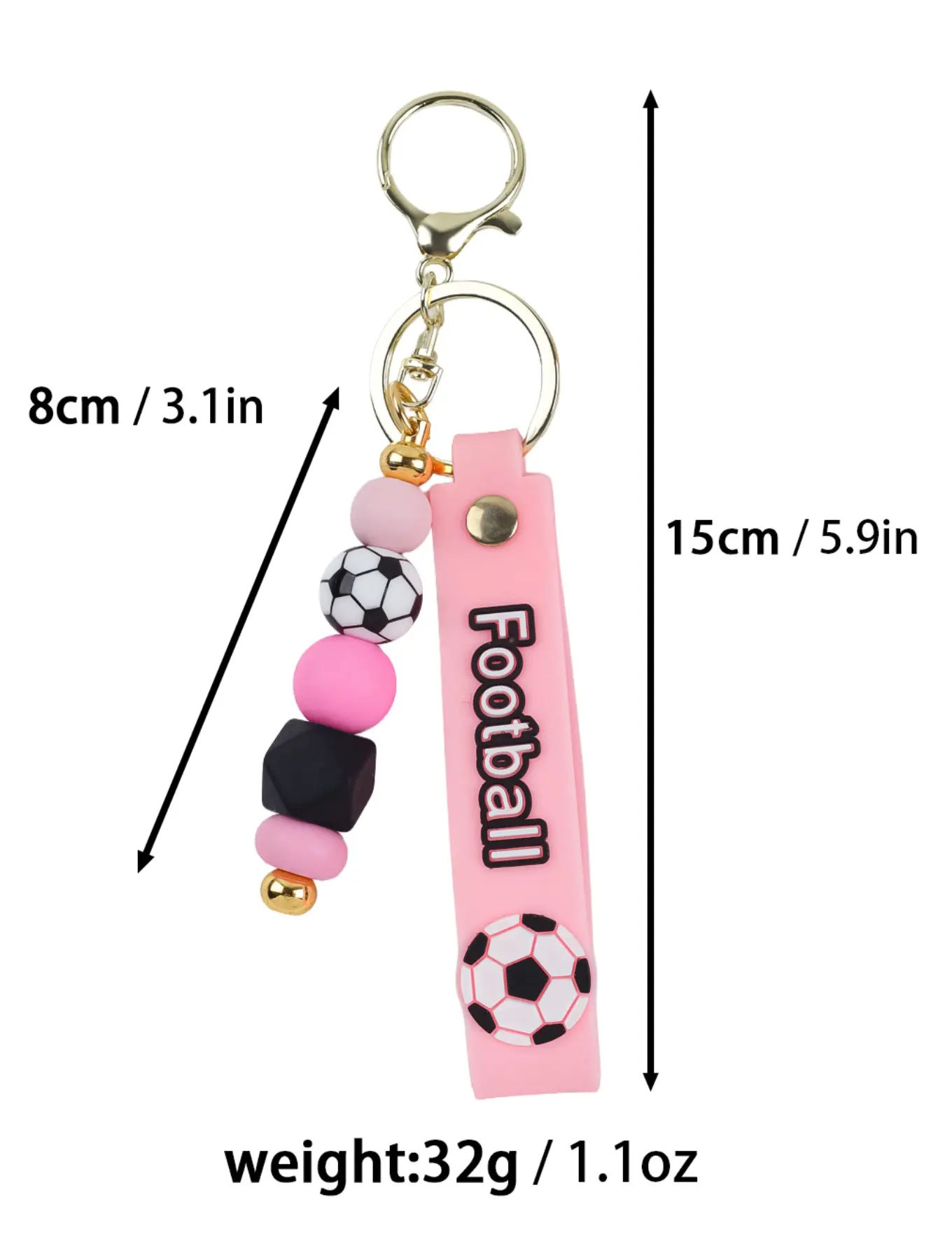 5. Trendy Soccer Beaded Keychain with Wrist Strap, Perfect Gift for Football Lovers, Silicone Beaded Keychain, Sports Style Soccer Bag Charm
