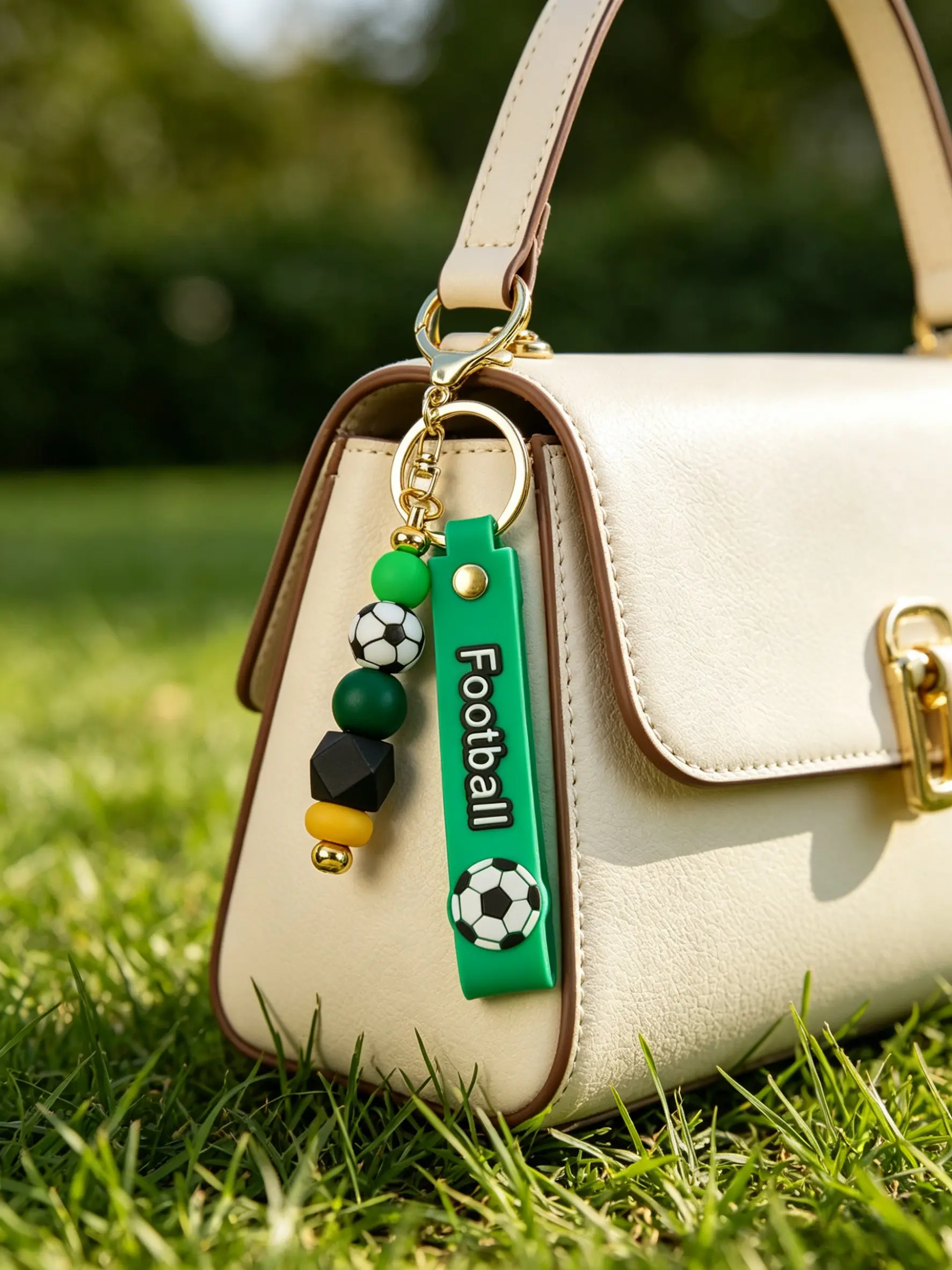 【Football Theme】: Perfect for football lovers, this keychain showcases a sporty soccer bag charm.