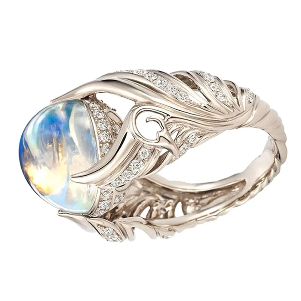 Explorinox Women's Elegant Wing Design Ring with Faux Moonstone & Rhinestone Inlaid for Wedding Party Banquet Dating Gift