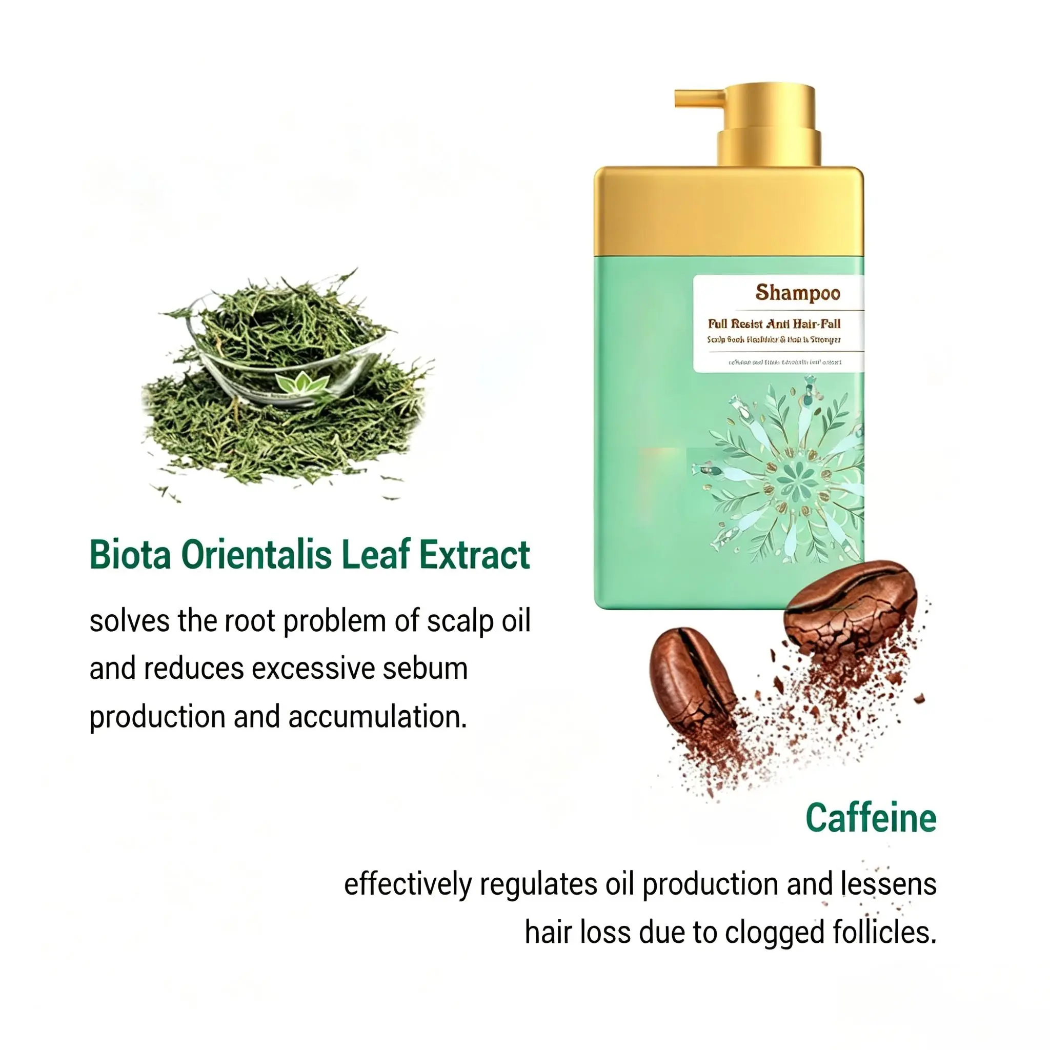 Transform your scalp health with plant-powered ingredients. Formulated with Biota Orientalis Leaf Extract—a natural sebum regulator—and Caffeine to energize follicles and prevent buildup that leads to thinning.