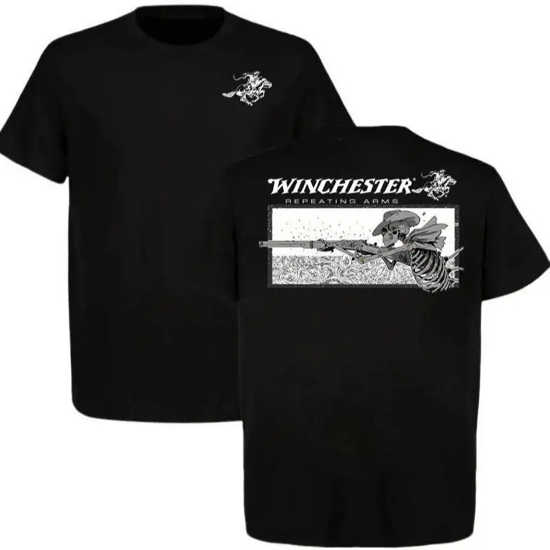Skeleton Cowboy Graphic Tee, White Cotton Menswear, Western Hunting Shirt, Perfect Gift for Gun & Cowboy Fans.