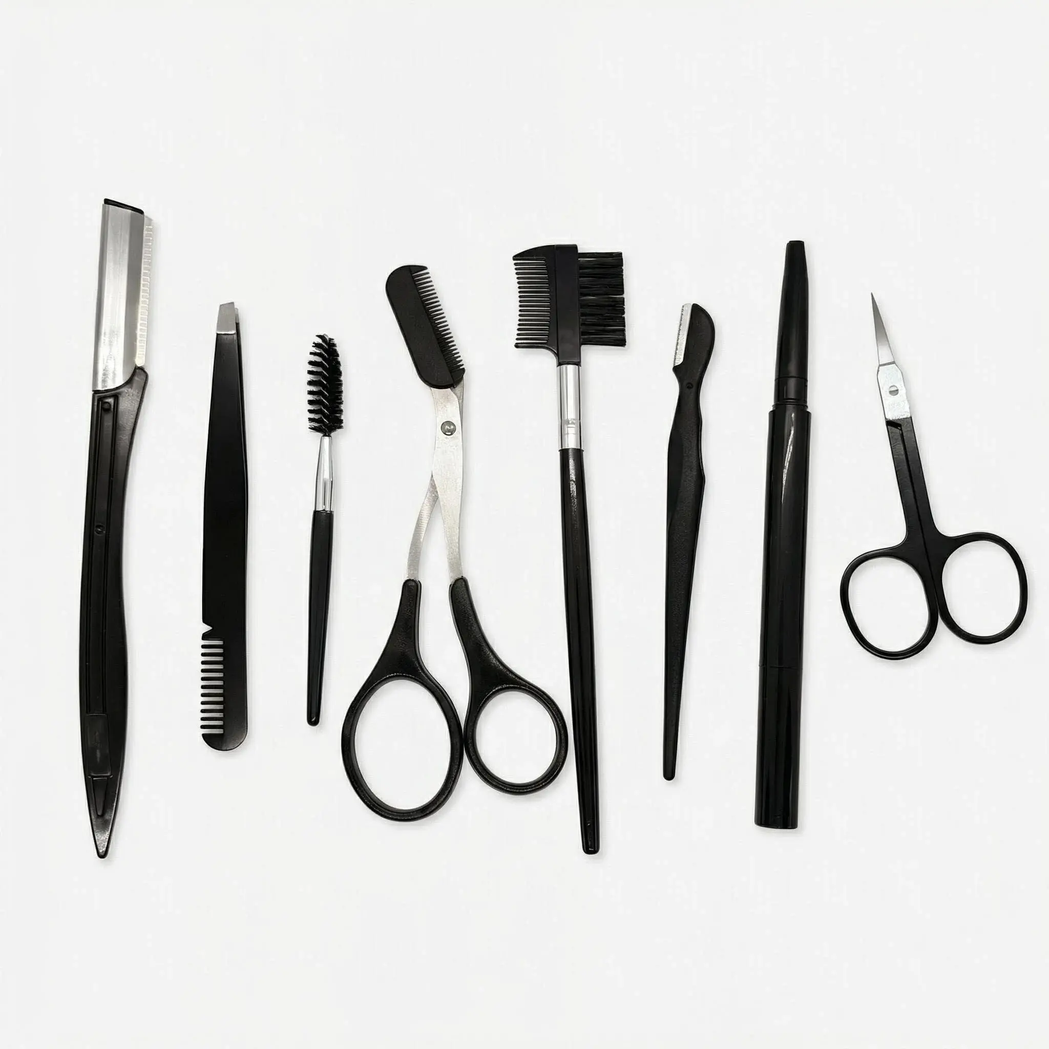 8-in-1 Professional Eyebrow Grooming Kit for Women & Men Complete set with razor tweezers scissors comb brush pencil for brow shaping facial hair removal and makeup Get salon-perfect brows at home travel-friendly suitable for all skin types