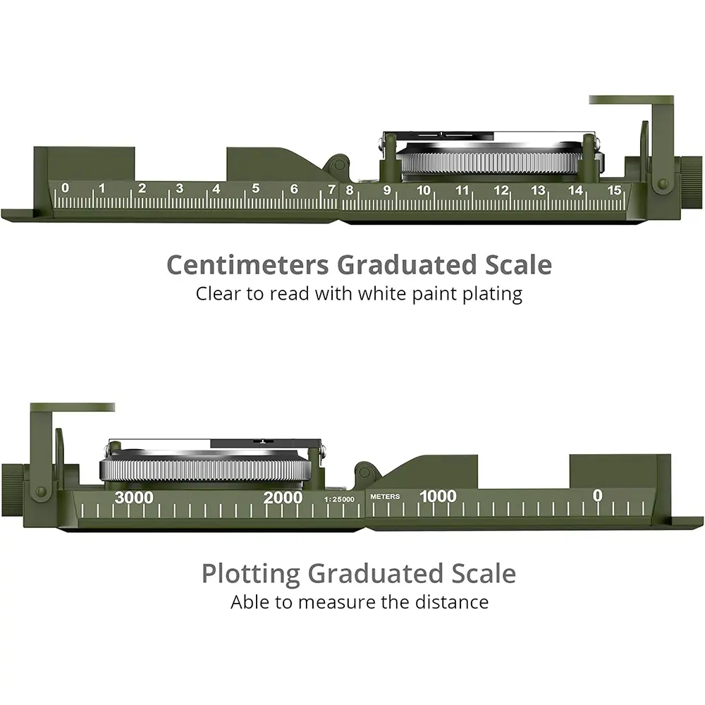 Durable and Compact: Durable military metal compass. Thermoelastic liquid-filled capsule with floating luminous dial. High accuracy and waterproof. Works well in all weather conditions. Unique Design: Luminous magnet arrow and dail, aiming line, magnifier viewer, tripod connection, gradienter, inclinometer, reading eyepiece, heavy-duty zinc die-cast, slope chart. Multifunction: Floating compass dial with 360° scale, slope measurement, adjustable prism lens, waterproof shakeproof. Suitable Activities: Ideal for camping, hiking, adventure, positioning, mapping, etc.