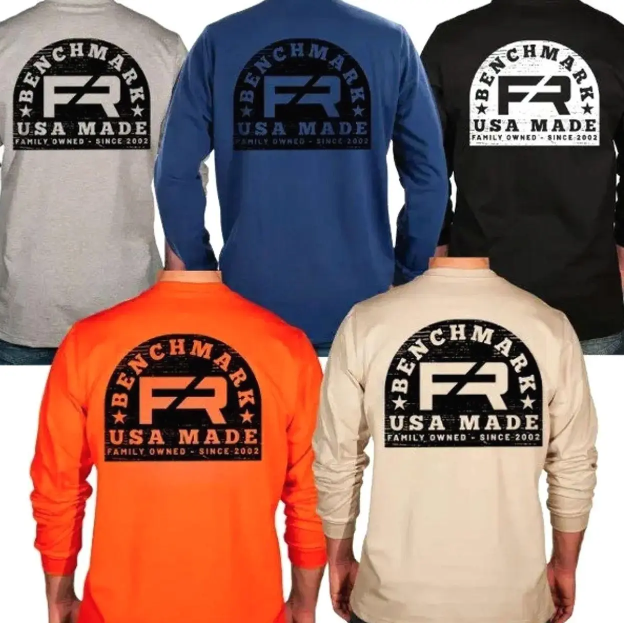 Benchmark Wood Stamp Flame Resistant Long Sleeve Shirt, Men's Graphic Workwear T-Shirt, Long Sleeve Tee clothing IJN EUG