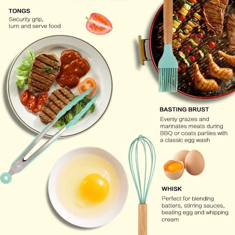 12-Piece Silicone Kitchen Utensils Set (Water Green)