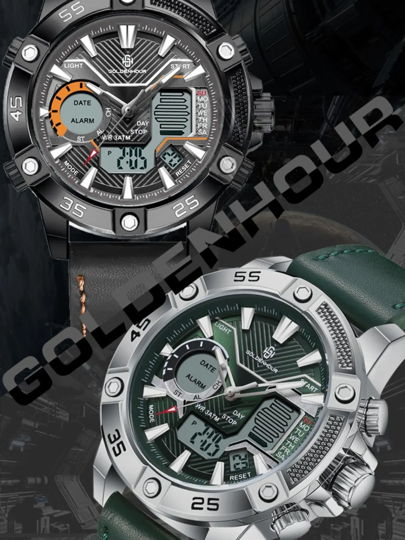 Classic Sporty Dual Movement Watch, Quartz Multifunctional Watch, Stopwatch, Alarm, Waterproof Casual Watch, Trendy Design