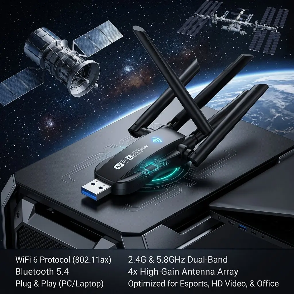 The dual band wireless USB network card is suitable for wireless connection of desktop PCs and other devices, and can provide a convenient and fast wireless internet access. The network card supports automatic detection function and can automatically adjust the speed