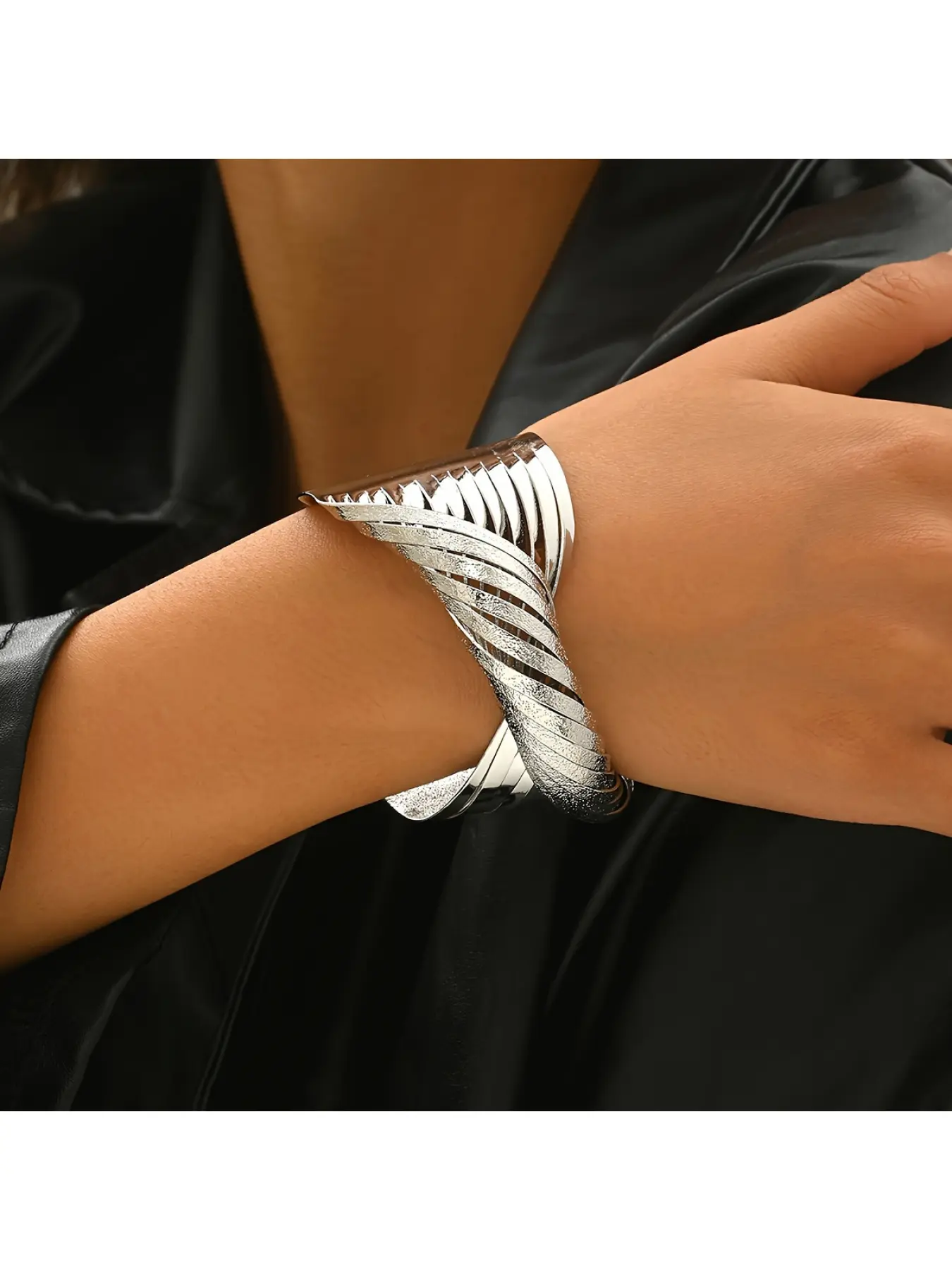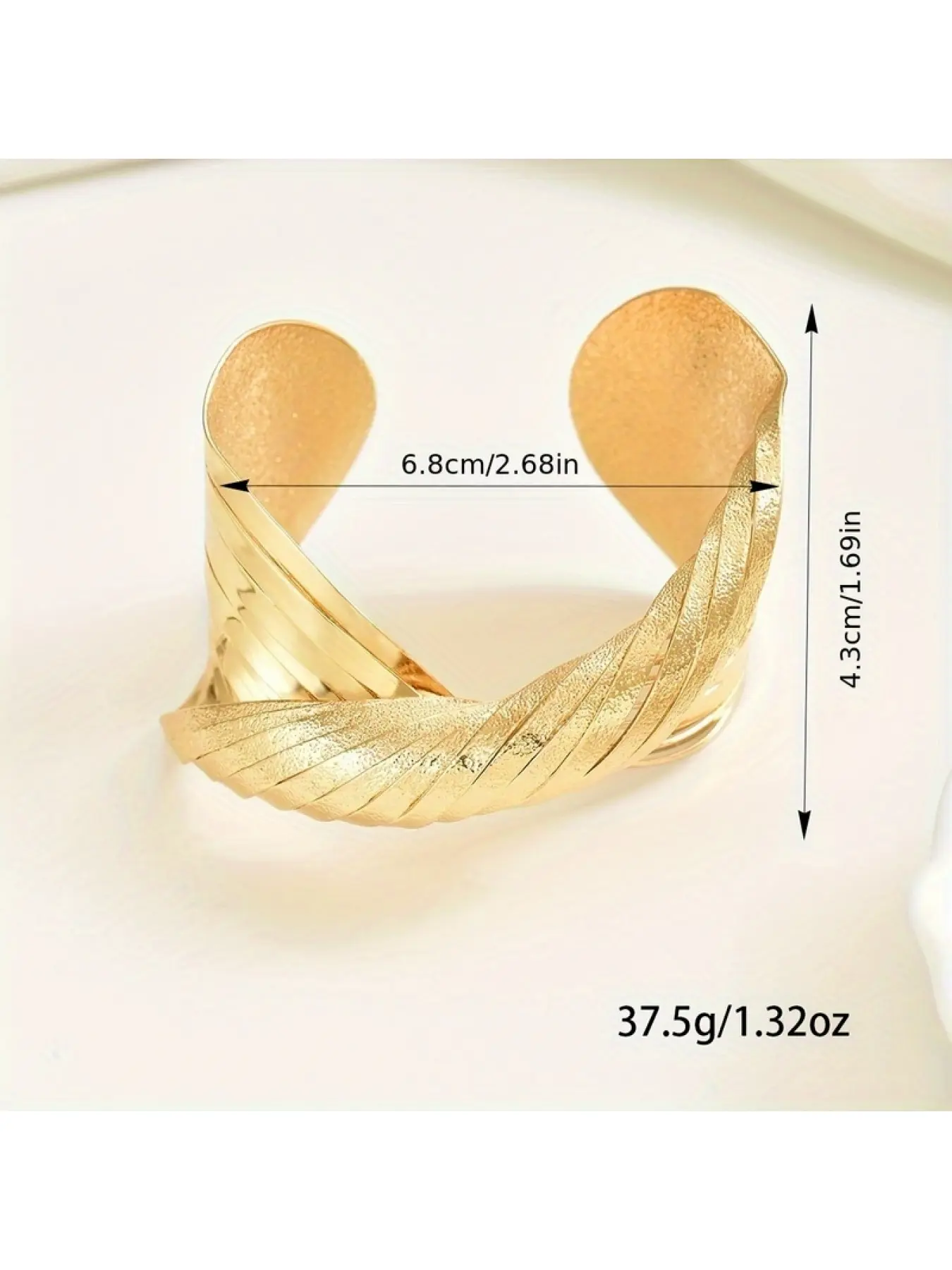 Gold Plated Hypoallergenic Matte Twist Wide Bangle for Women Bohemian Stackable Minimalist Neutral Jewelry