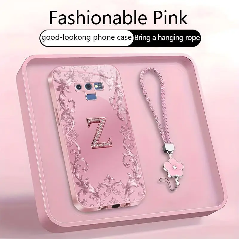 Suitable for [Galaxy Note9] high-end women's phone case🥰,free four-leaf clover lanyard included—choose any one of the 26 letters. Drop-resistant and fingerprint-proof. YM99