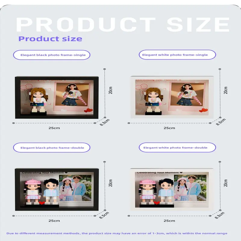 Simply send us your favorite couple photo—whether it’s a romantic date snapshot, wedding portrait, or casual daily moment—and we’ll handcraft a delicate figurine that mirrors your features, along with a sleek, elegant frame to display the original photo. Made of high-quality, durable materials, it’s sturdy yet delicate, suitable for placing on her desk, bedside table, or shelf, letting her feel your love every time she sees it.