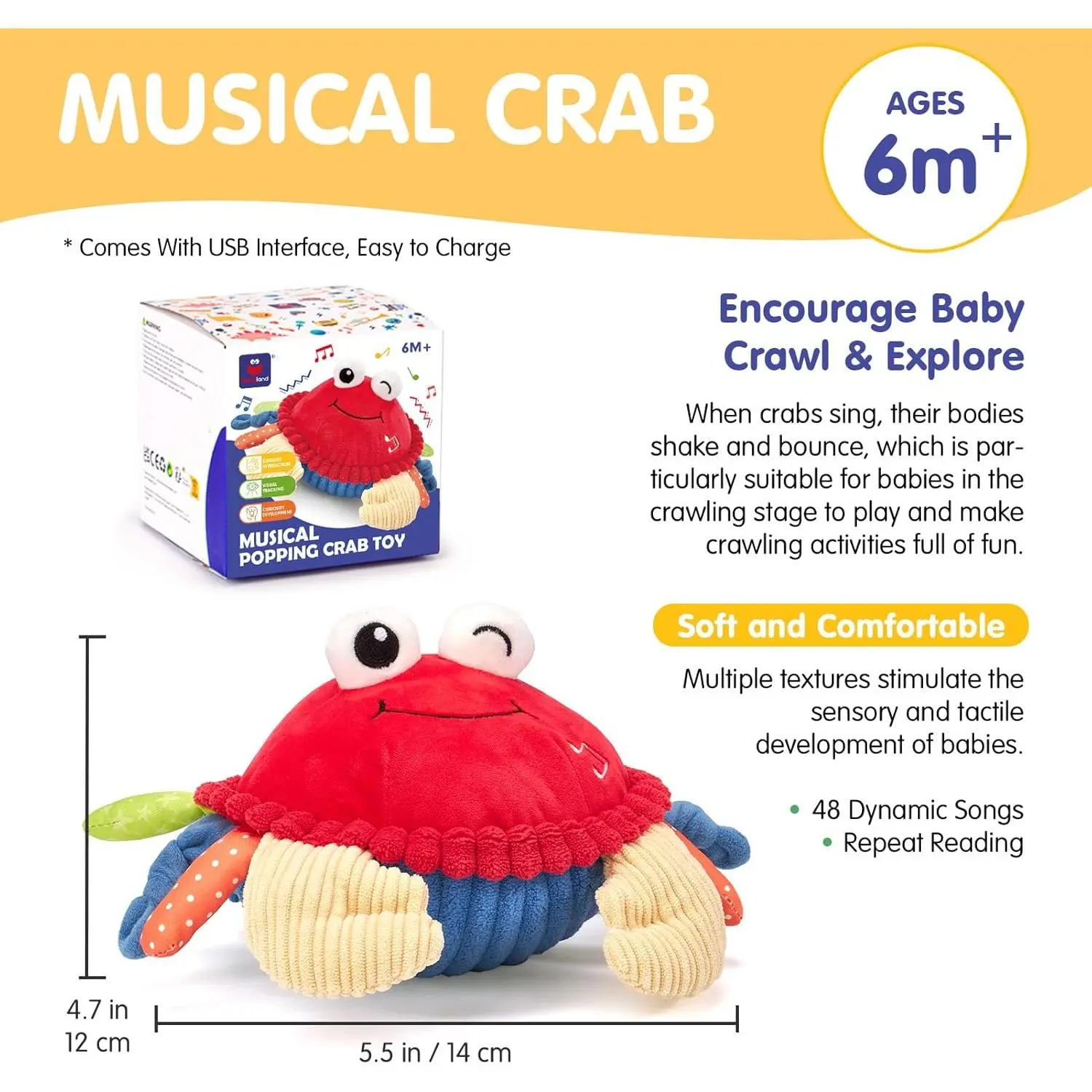 Baby Toys 6+ 12-18 Months - Crawling Musical Dancing Walking Moving Bouncing Learning Crab Tummy Time Toy Sensory Toddler Toys for 1-3 Year Old Birthday Easter Basket Stuffers