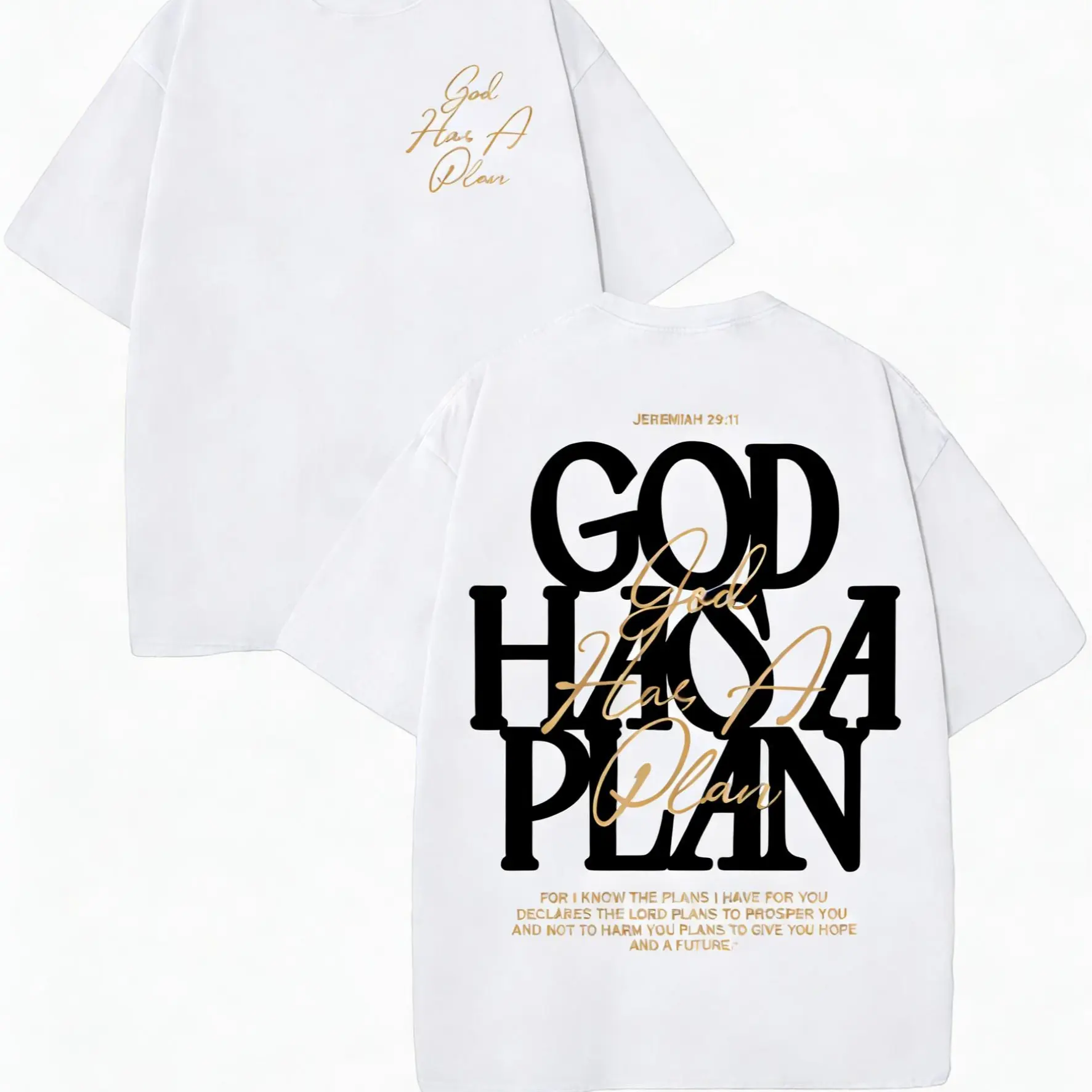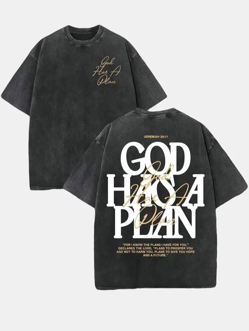 ·Retro Washed T-Shirt: This double-sided printed tee features the bold 'GOD HAS A PLAN' letter graphic. Perfect for men seeking a distressed streetwear look. 🕸️