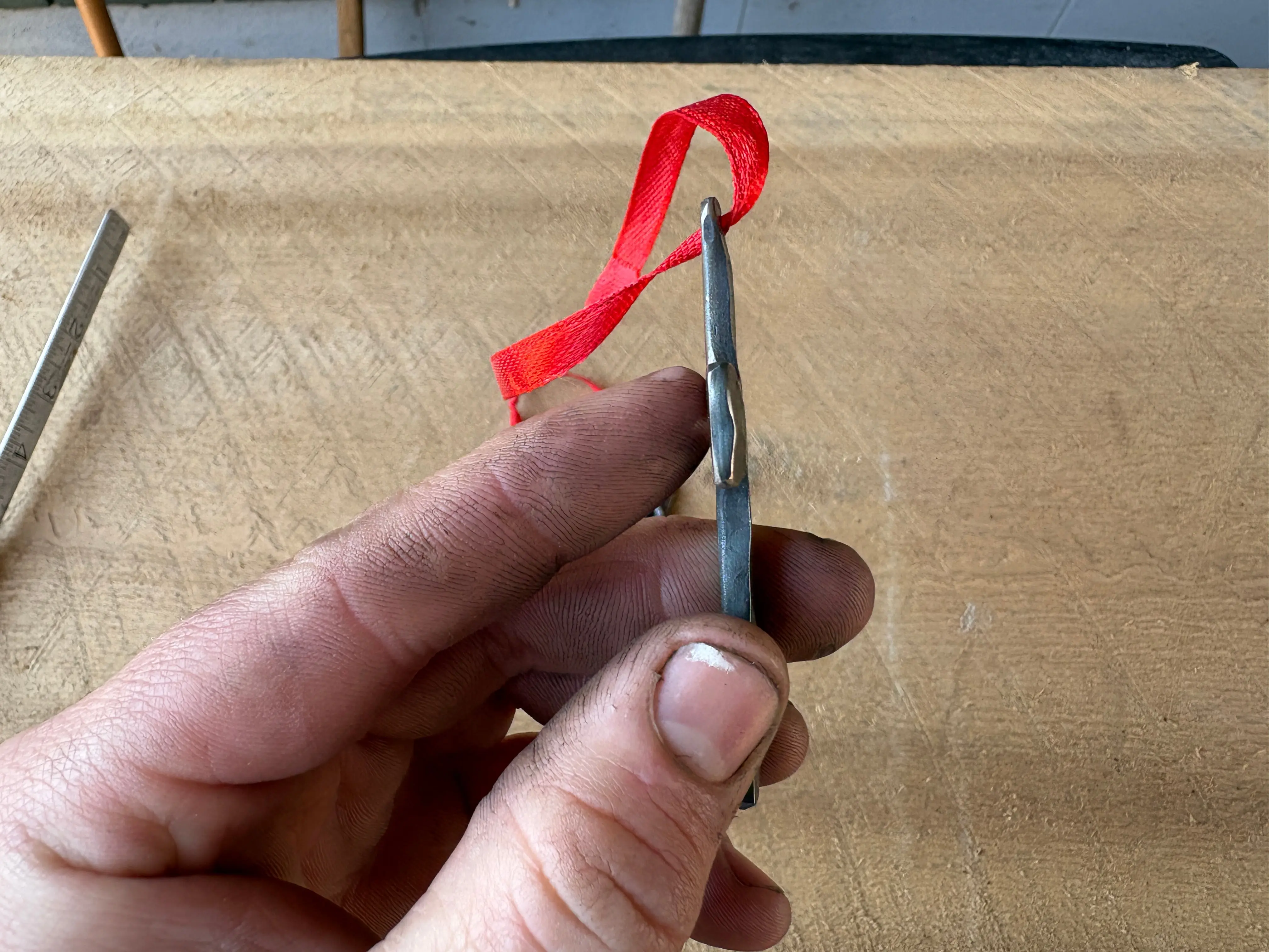 There are two options for these, with a drilled hole or a forged loop (please see the last picture). Each one is about 3 inches long and weighs a little more than an ounce. They are hand made from iron and finished with oil. Cats can't break these beautiful ornaments!