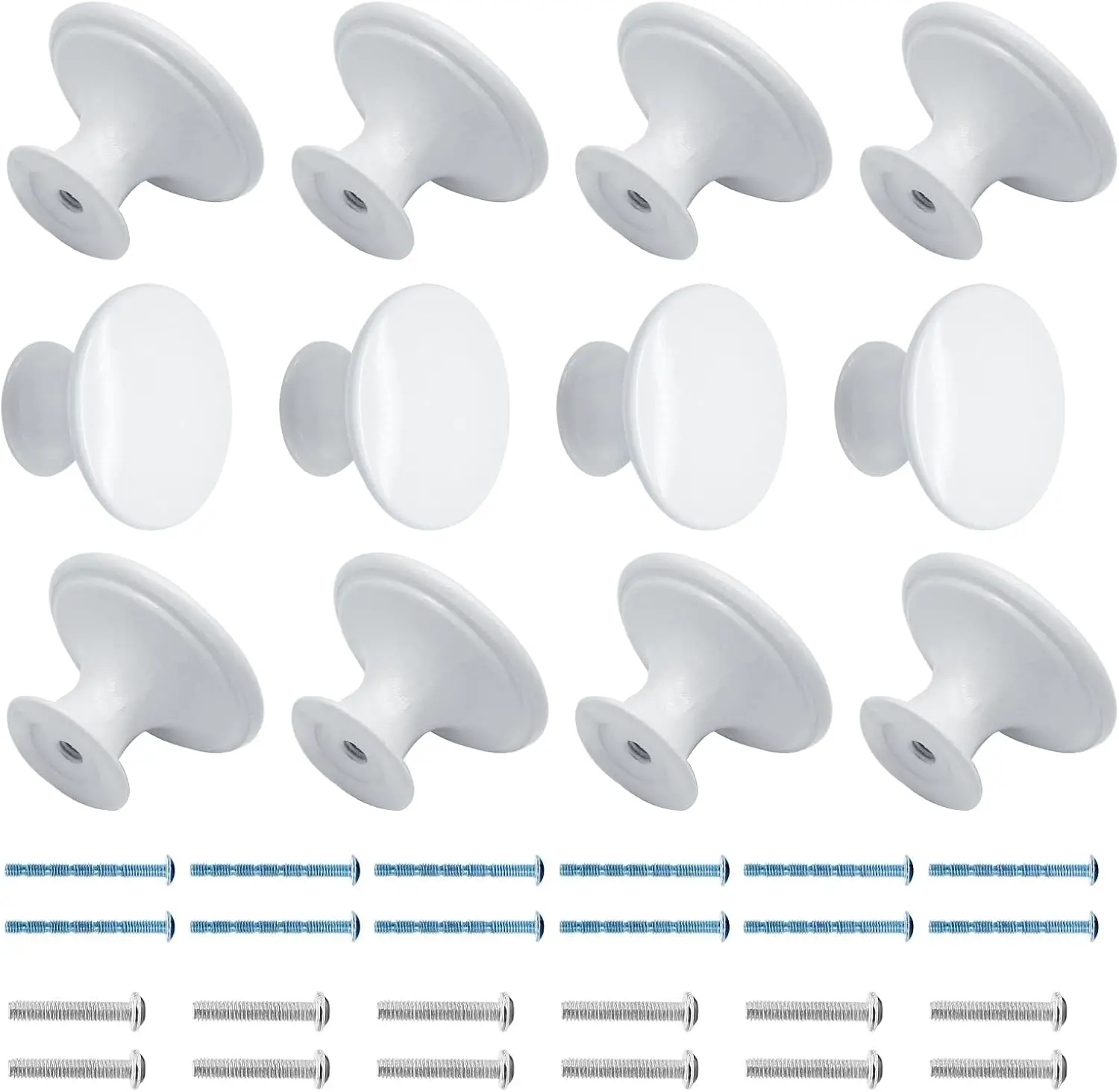 ·[Package Contain] 12 pcs White cabinet knobs; Diameter:30mm/1.18"; Base diameter:17mm/0.67"; Height:21mm/0.82";Screws Length:25mm/0.98"; Color: White;