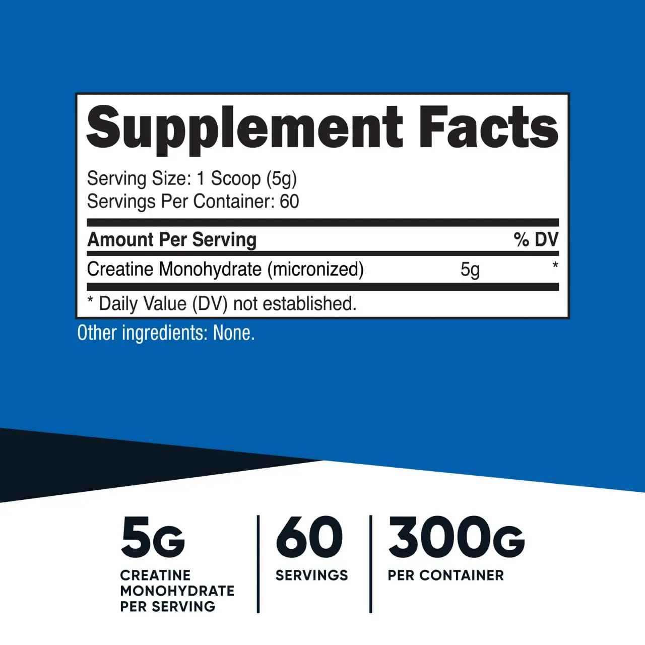 Ideal for gym and active lifestyle,60 servings per container for long lasting use,Unflavored formula for flexible drink options,5g per serving for consistent daily use,Micronized powder for easy mixing and smooth texture,Daily creatine support for strength and workout routine