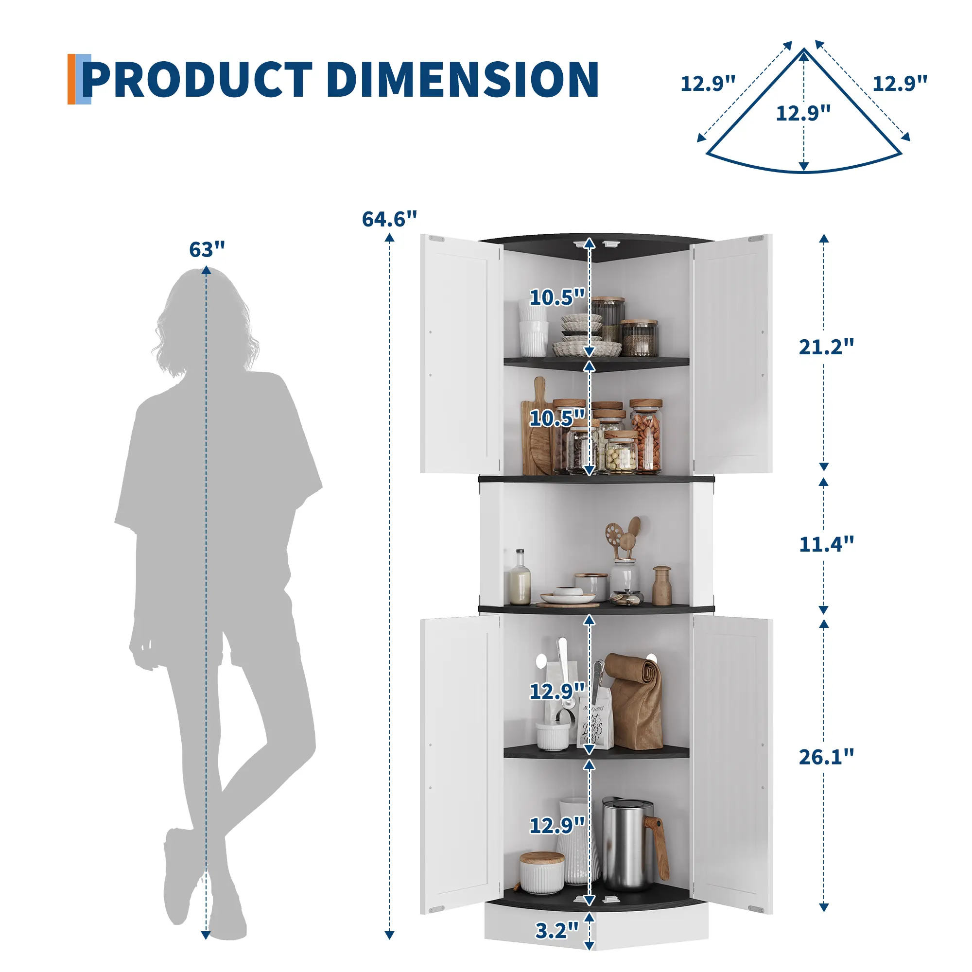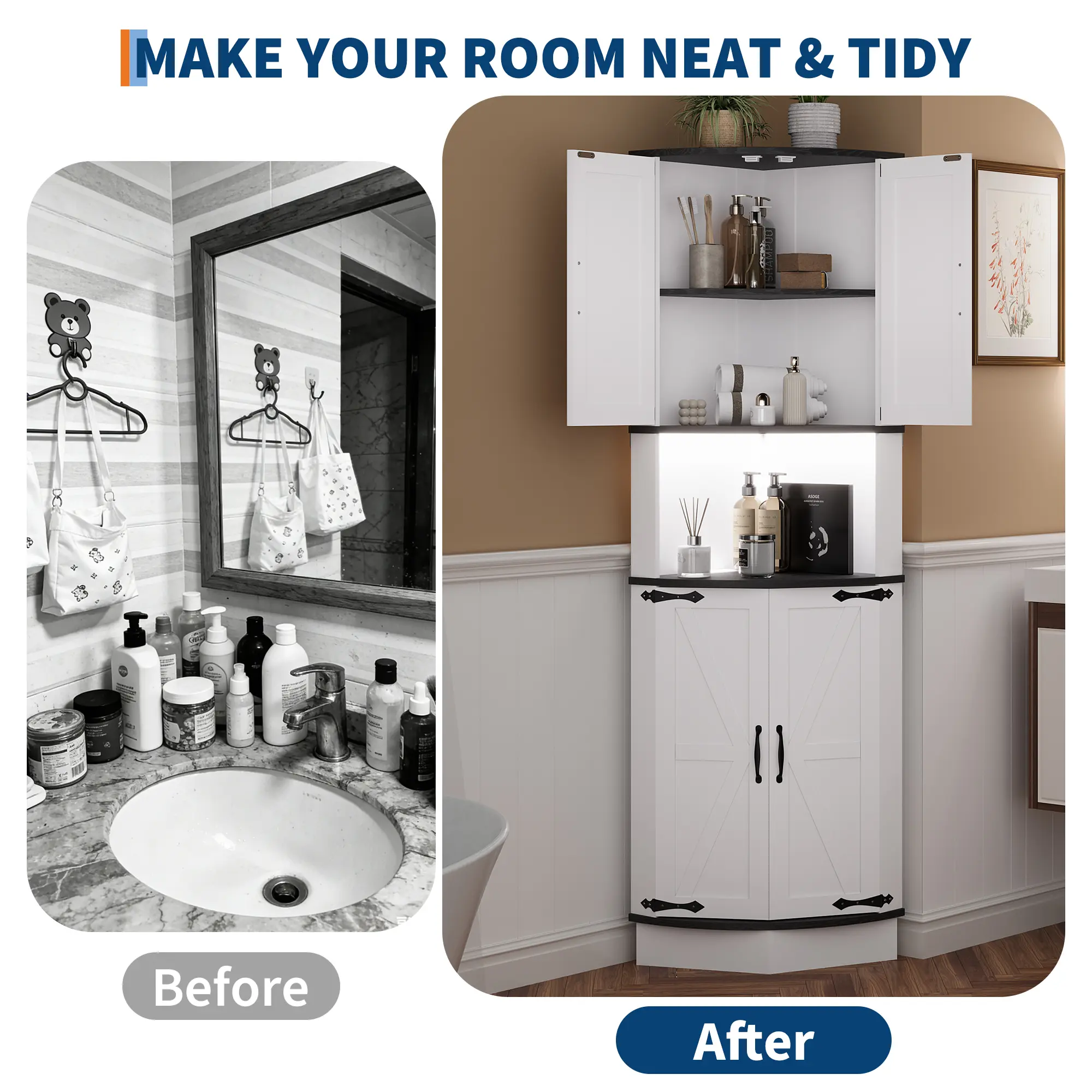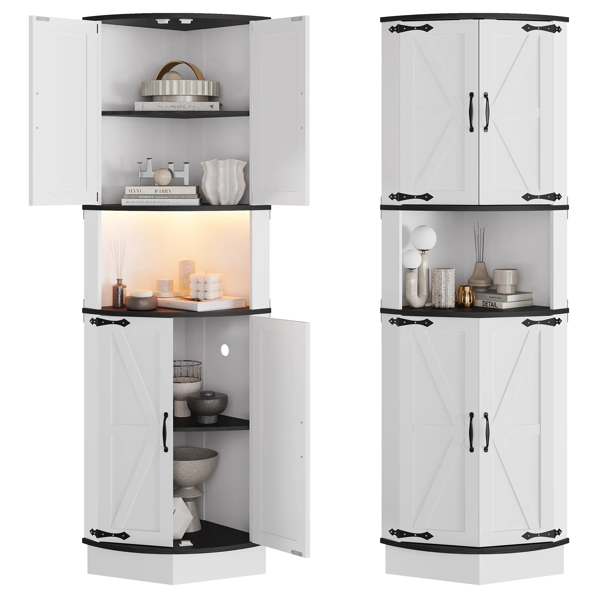 ·【Multi-Room Versatility for Kitchen, Bath & Beyond】 Designed to adapt to your decor needs, this cabinet fits seamlessly in kitchens (as a pantry), living rooms, home bars, bathrooms, bedrooms, or entryways. Its compact triangle shape optimizes corner spaces while providing both open and concealed storage.