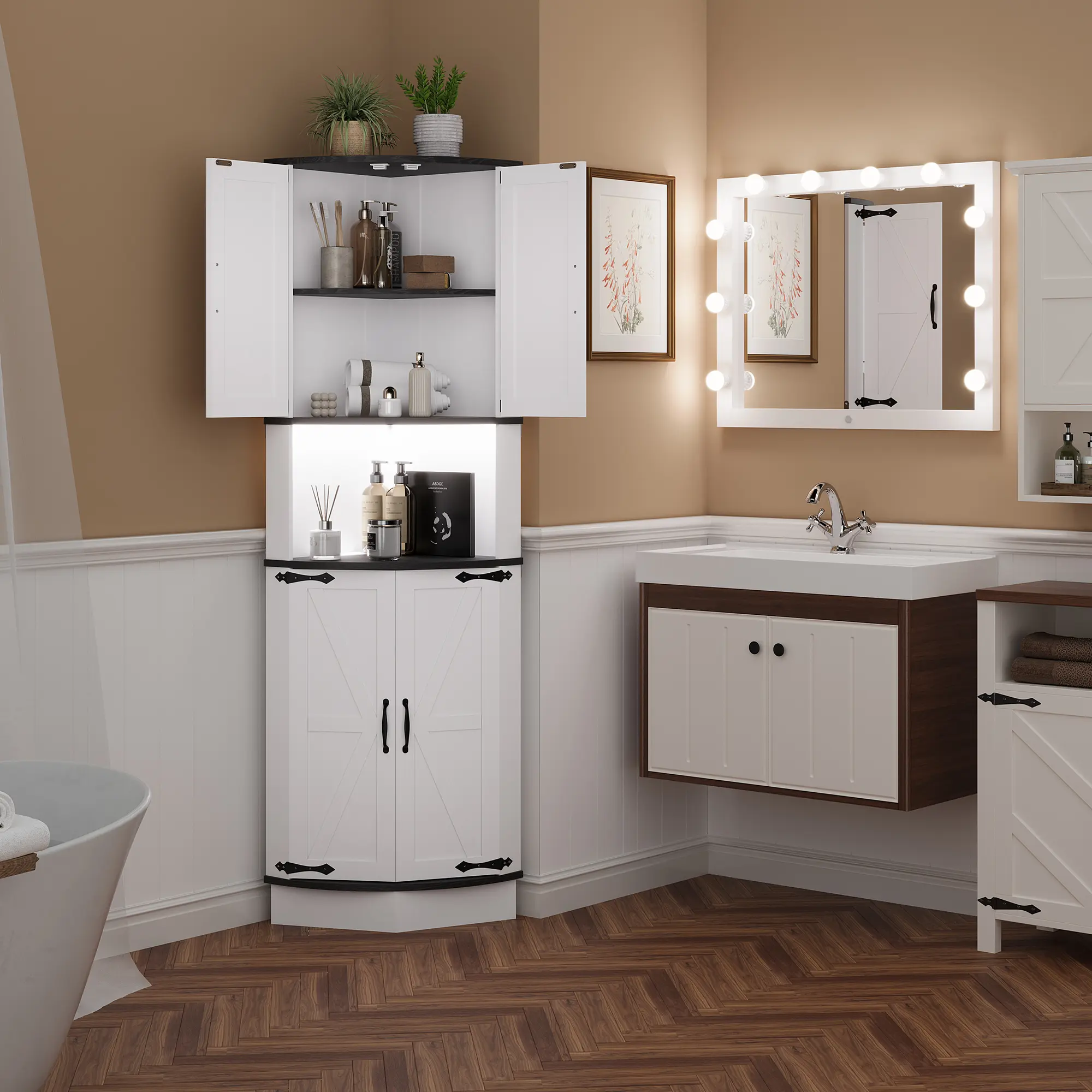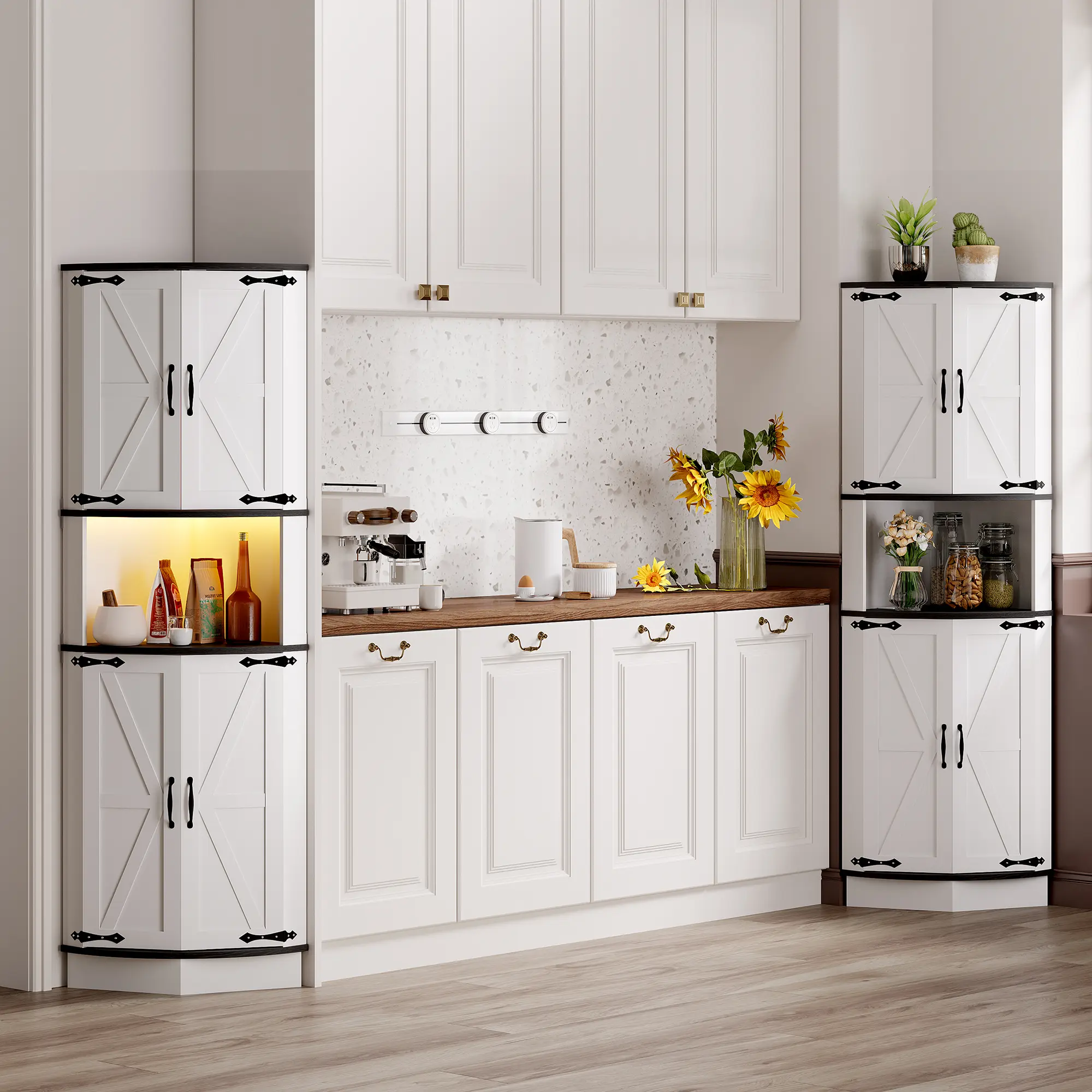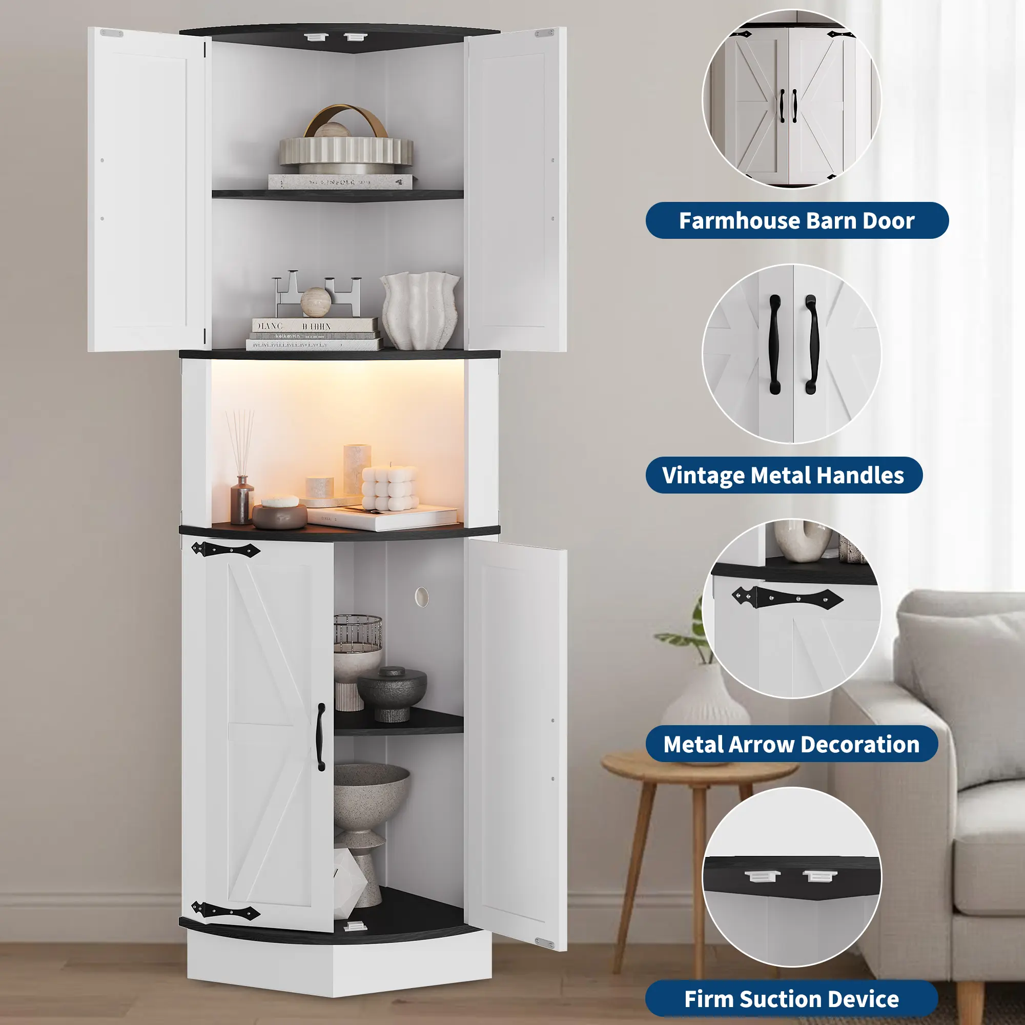 ·【Multi-Room Versatility for Kitchen, Bath & Beyond】 Designed to adapt to your decor needs, this cabinet fits seamlessly in kitchens (as a pantry), living rooms, home bars, bathrooms, bedrooms, or entryways. Its compact triangle shape optimizes corner spaces while providing both open and concealed storage.