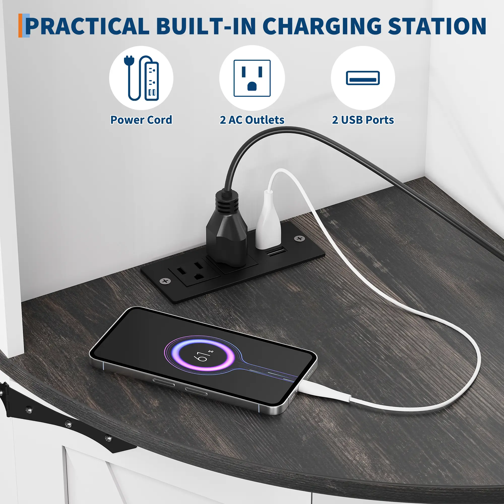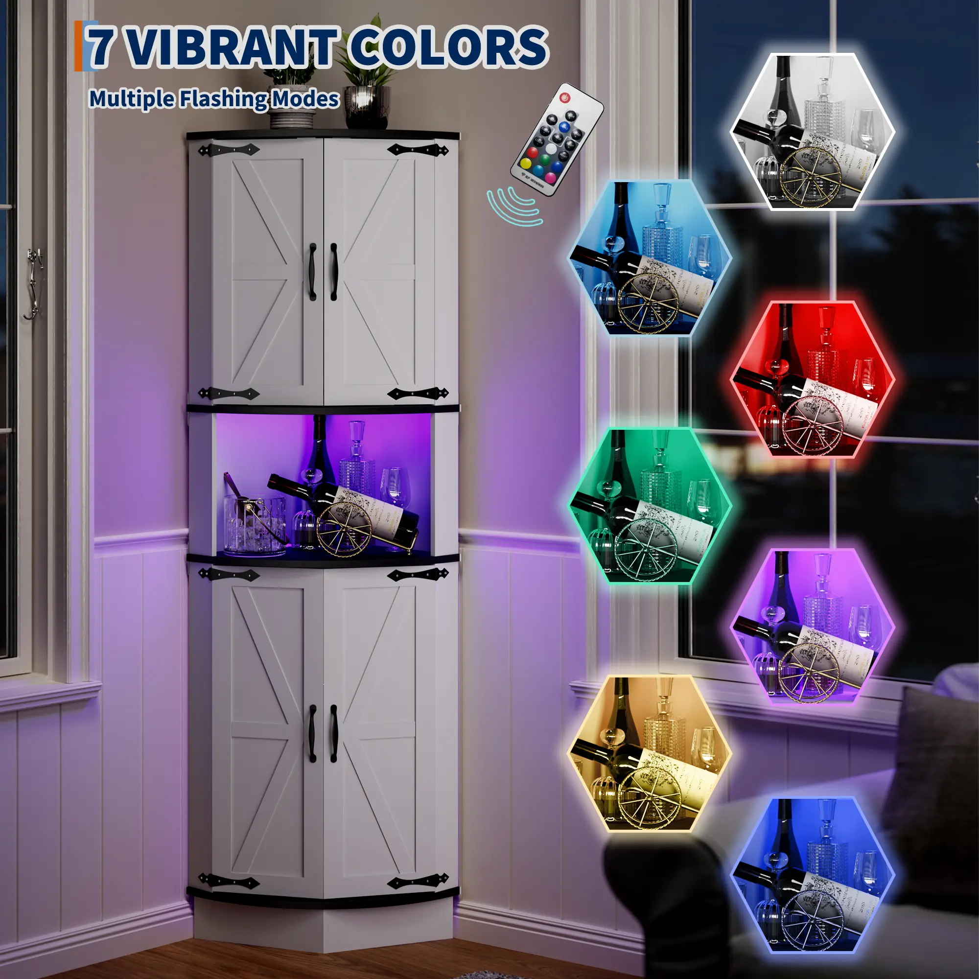 ·【Built-In LED Lighting & Charging Station】 Enhance ambiance with remote-controlled LED strips offering 7 customizable colors. Equipped with 2 USB ports and 2 AC outlets, this cabinet doubles as a practical charging hub for devices, lamps, or small appliances—keeping cords organized while adding functional style to any room.