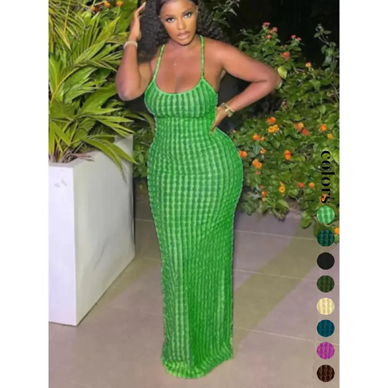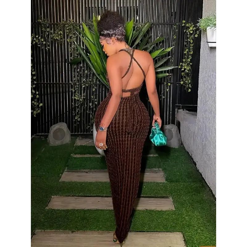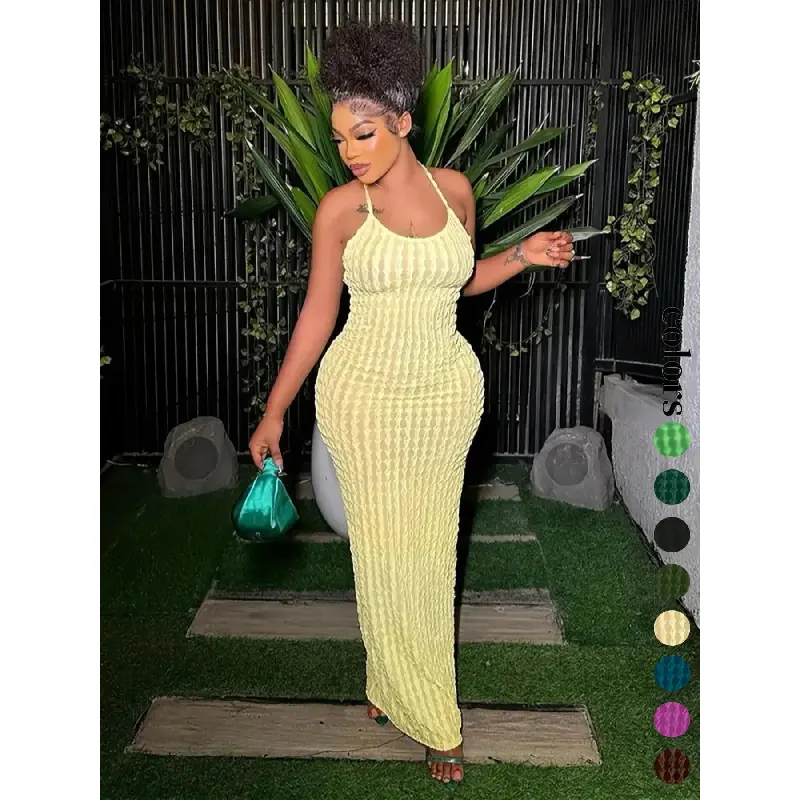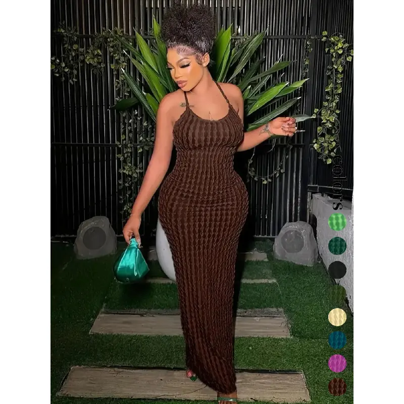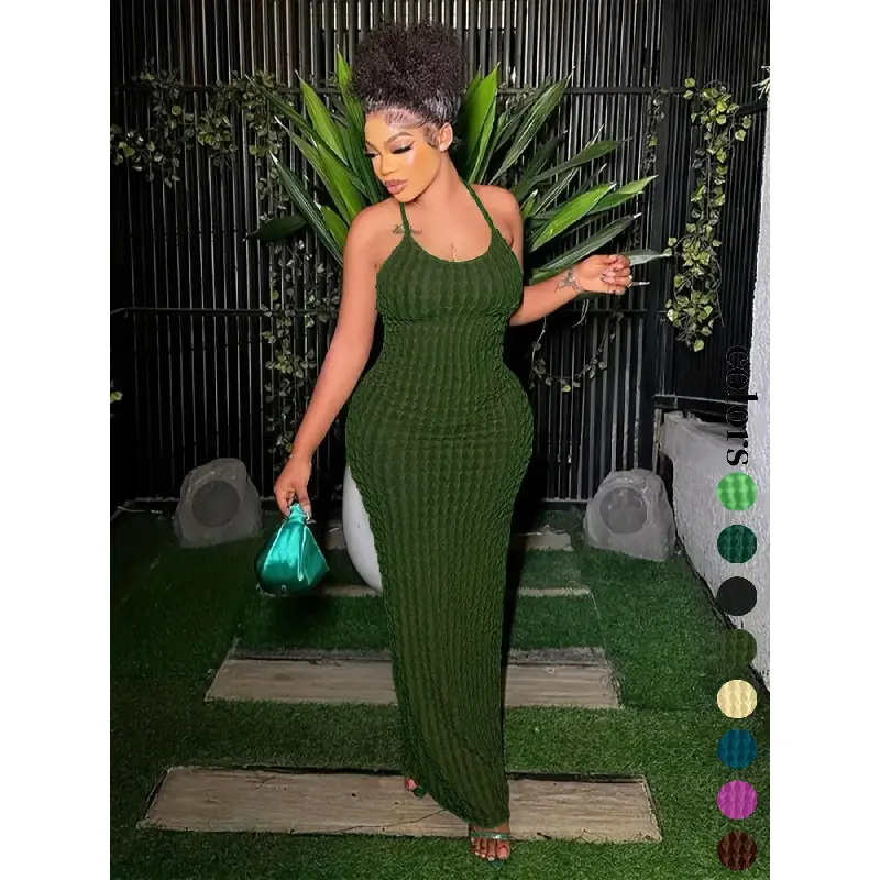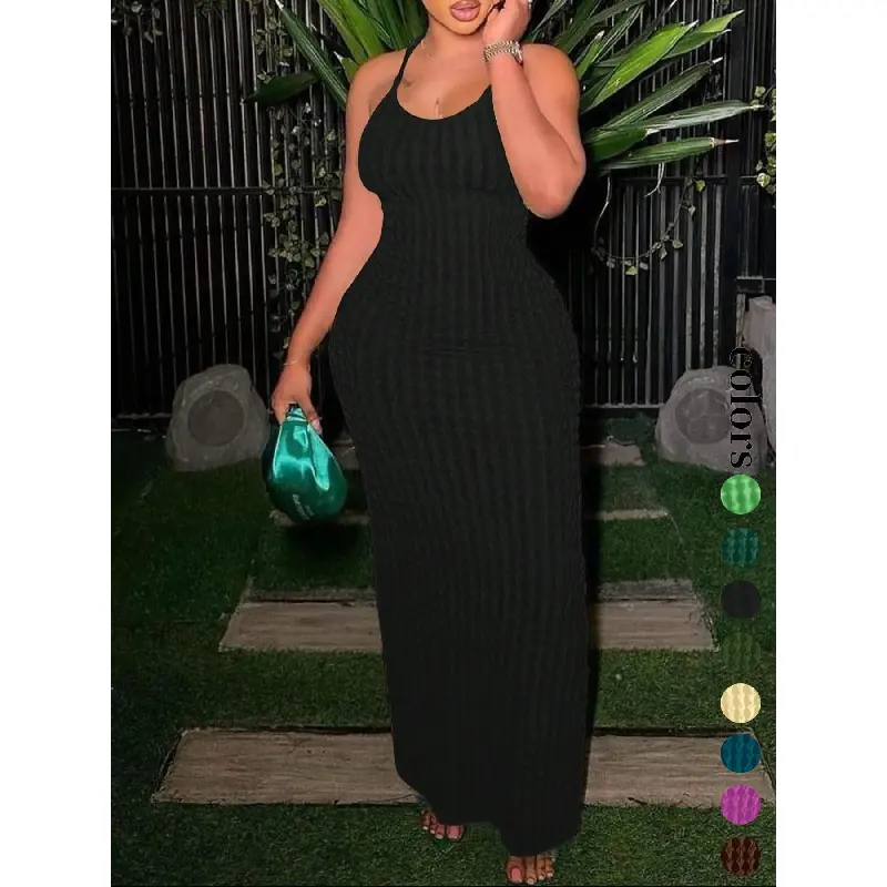 Women's Solid Criss Cross Backless Frill Trim Cami Dress Bodycon Maxi for Party Club Dating Wear Summer Sleeveless Dress graduation
