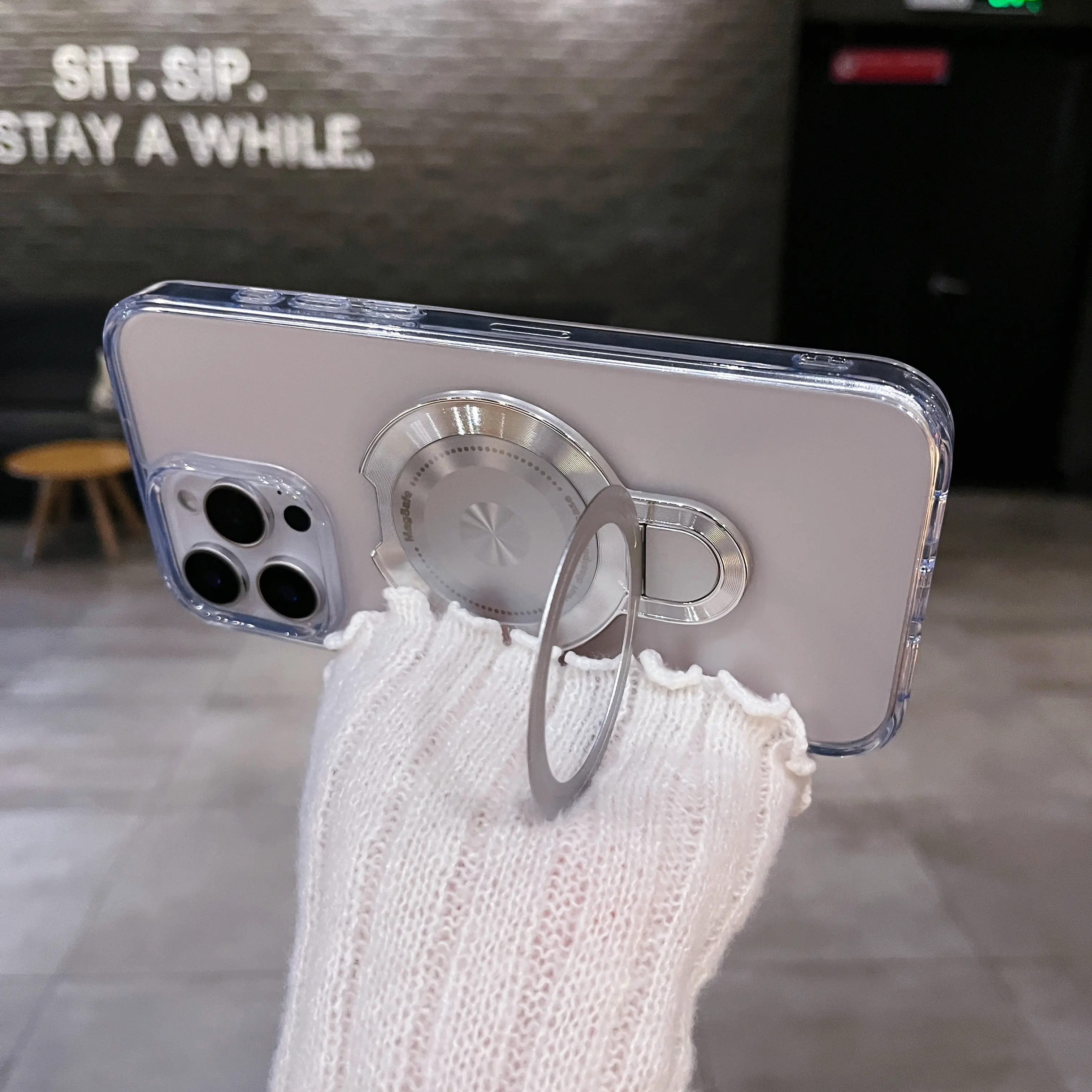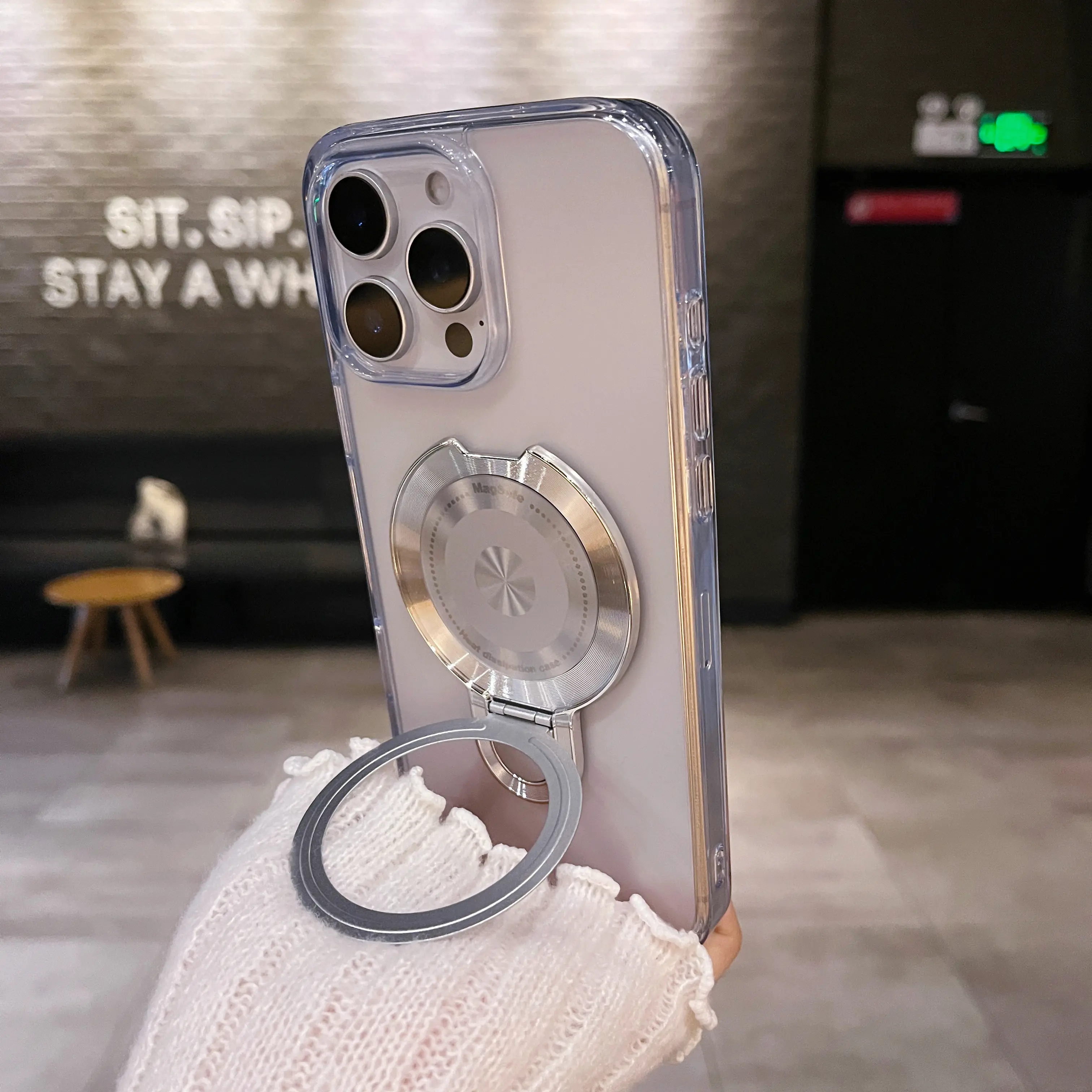 The sleek magnetic ring isn't just for show! It pops open to a sturdy, 360° rotatable kickstand for hands-free TikTok binging, and even has built-in touch control for quick, easy access.