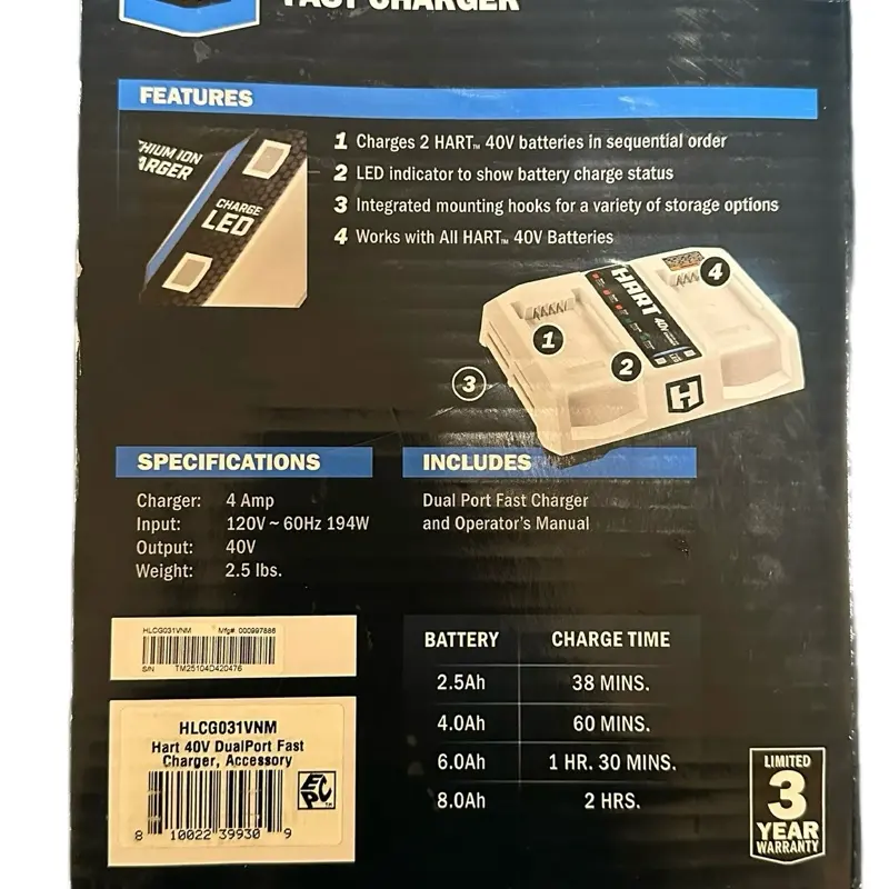 HART 40V Dual Port Fast Charger – 4A Sequential Charging System with LED Indicator