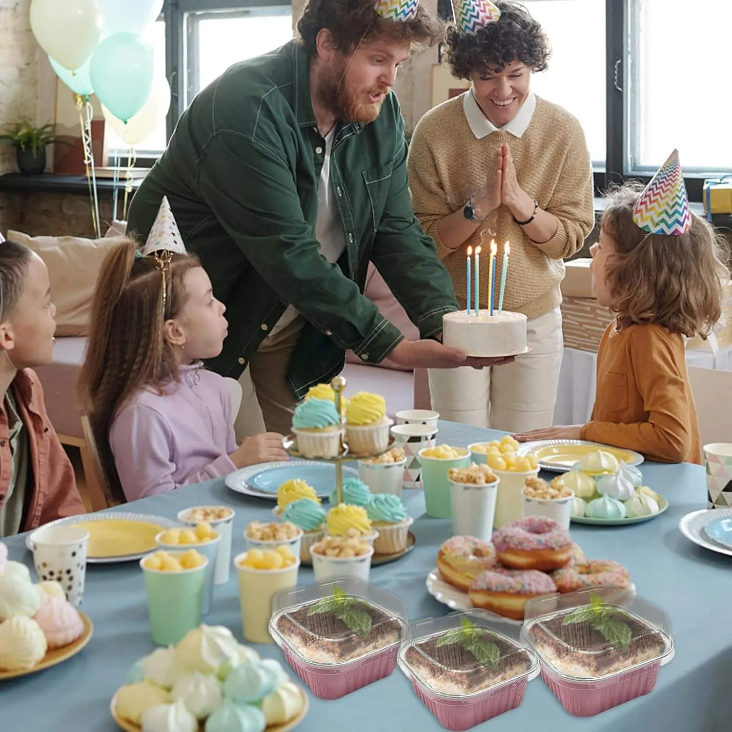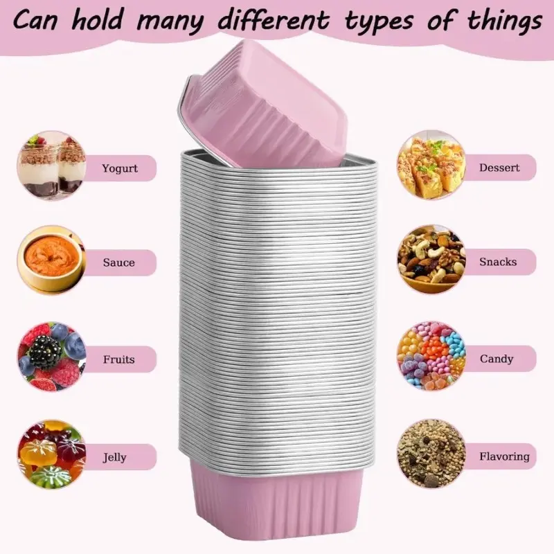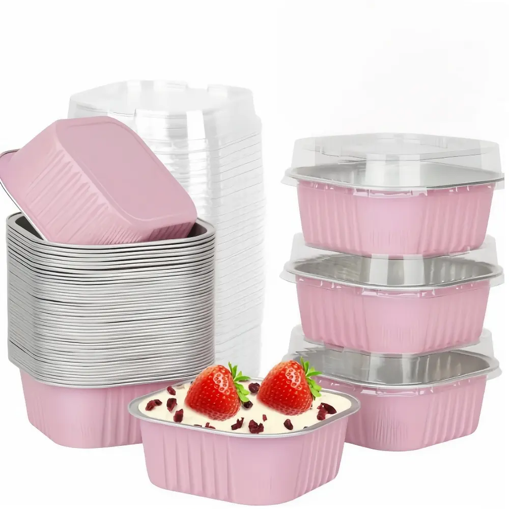 30 Pcs 5 oz Pink Mini Disposable Cake Plates, Foil Square Baking Cups with Lids,Muffin Plates, 3.5x3.5 Small Baking Cake Plates, Cupcake Containers, Suitable for Single Cakes, Mini Muffin Plates