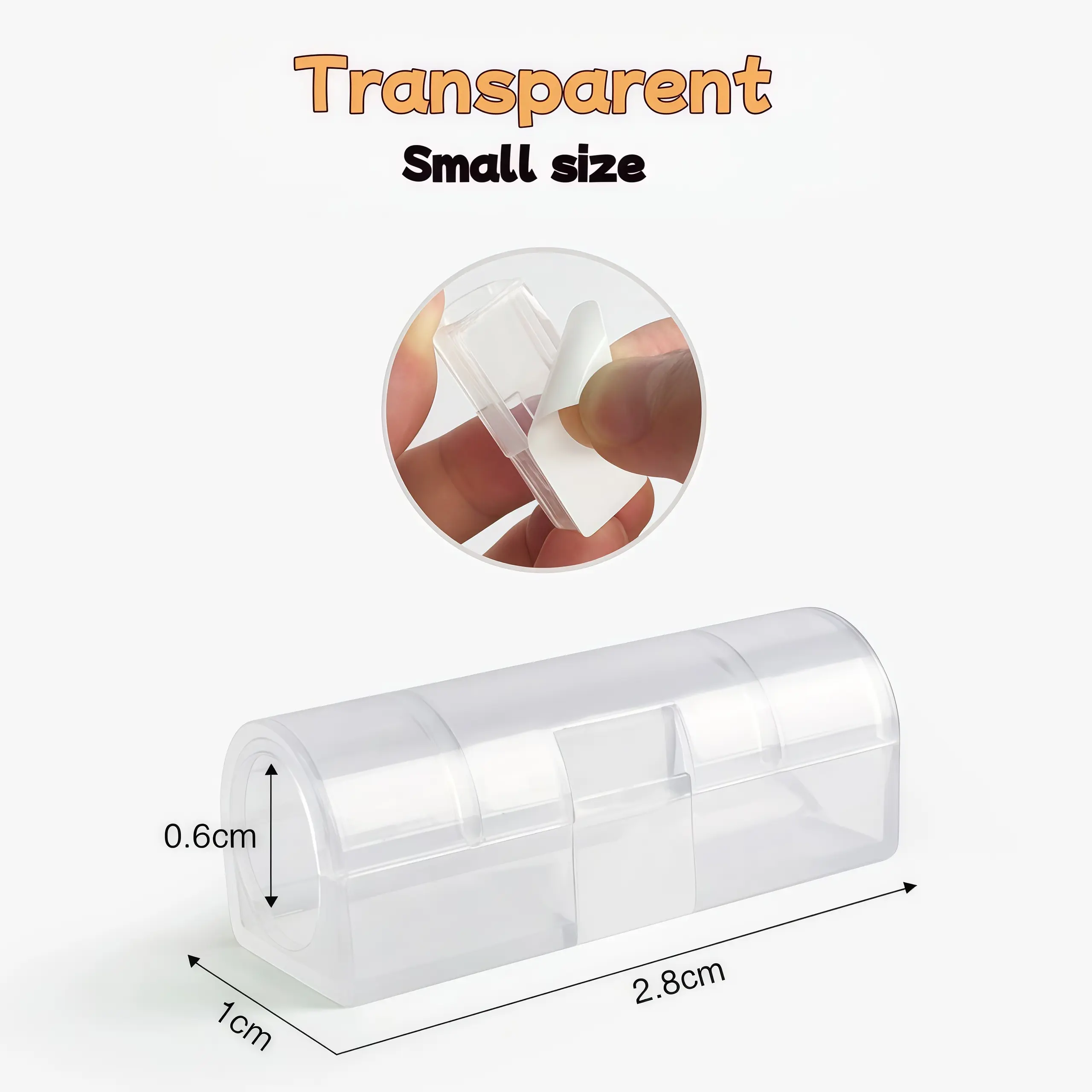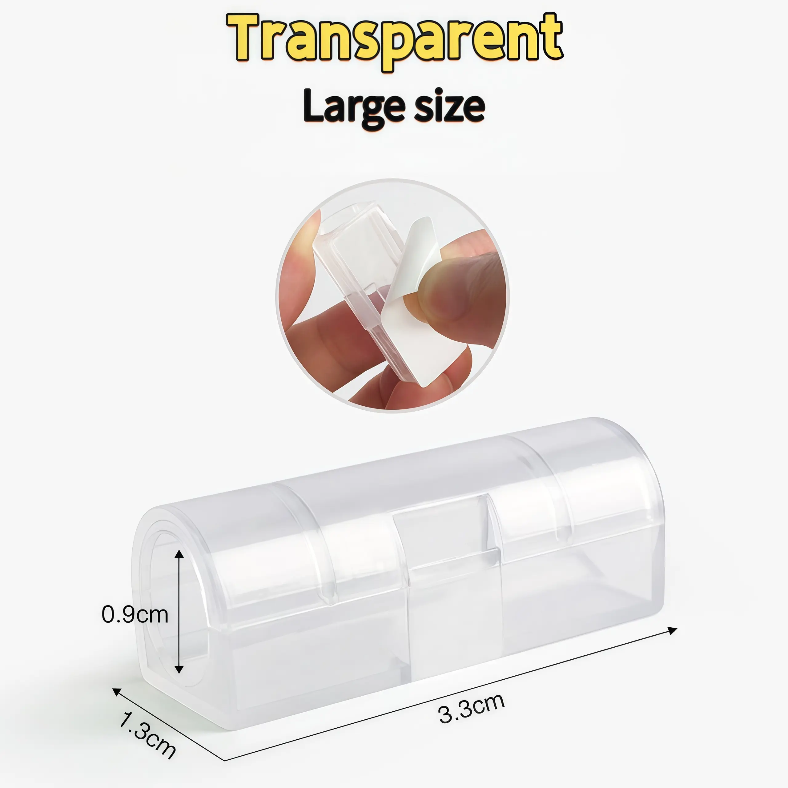 Effortless Cable Management Solution Say goodbye to sticky messes and damaged surfaces! Our cable organizer uses high-performance acrylic adhesive, stronger than standard 3M tapes. It leaves no residue when removed. Stick the base to any smooth, dry surface, wait 30 minutes for the adhesive to set, and enjoy a secure cable holder. Versatile Cord Holder With a slot diameter of up to 8mm (0.32"), our cord holder securely holds a wide range of wires, including Type-C chargers, Lightning cables, HDMI cords, USB cables, power cords, network cables, headphones, and more. These cord organizers are the ideal desk accessory for tidying your home or office. Durable and Long-Lasting Constructed with high-quality ABS plastic, these cord organizers are tougher and longer-lasting than rubber cable organizers. The smooth operation and sturdy construction ensure they’ll keep your cables tidy for years. Perfect for office, home, wall, desk, car, dashcam, Ethernet, electric wires, TV, PC, indoor/outdoor light clips.