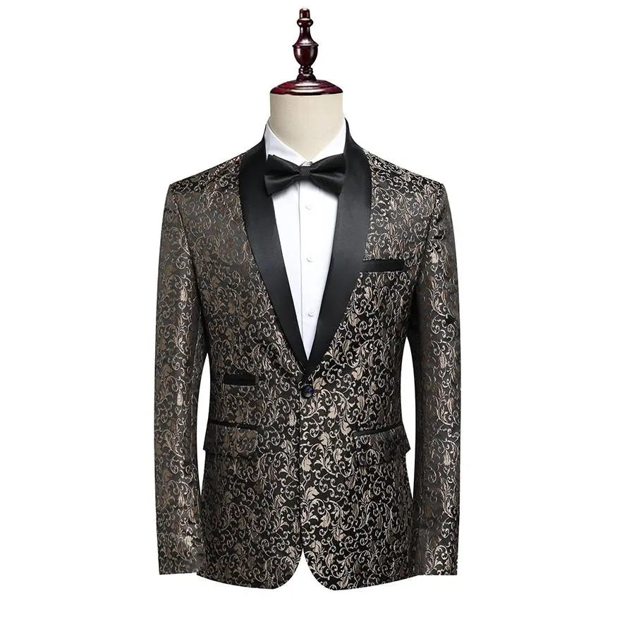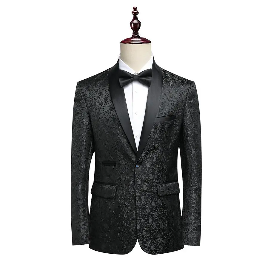 This men's Korean style shawl lapel suit features an elegant jacquard pattern, slim fit cut, and center vent, designed for business formal occasions and casual wear alike. The shawl lapel adds a touch of sophisticated luxury, while the jacquard detailing creates a rich, textured appearance that sets you apart from traditional solid suits. Perfect for all-season wear, this suit is a versatile investment for the modern gentleman who values both style and quality.